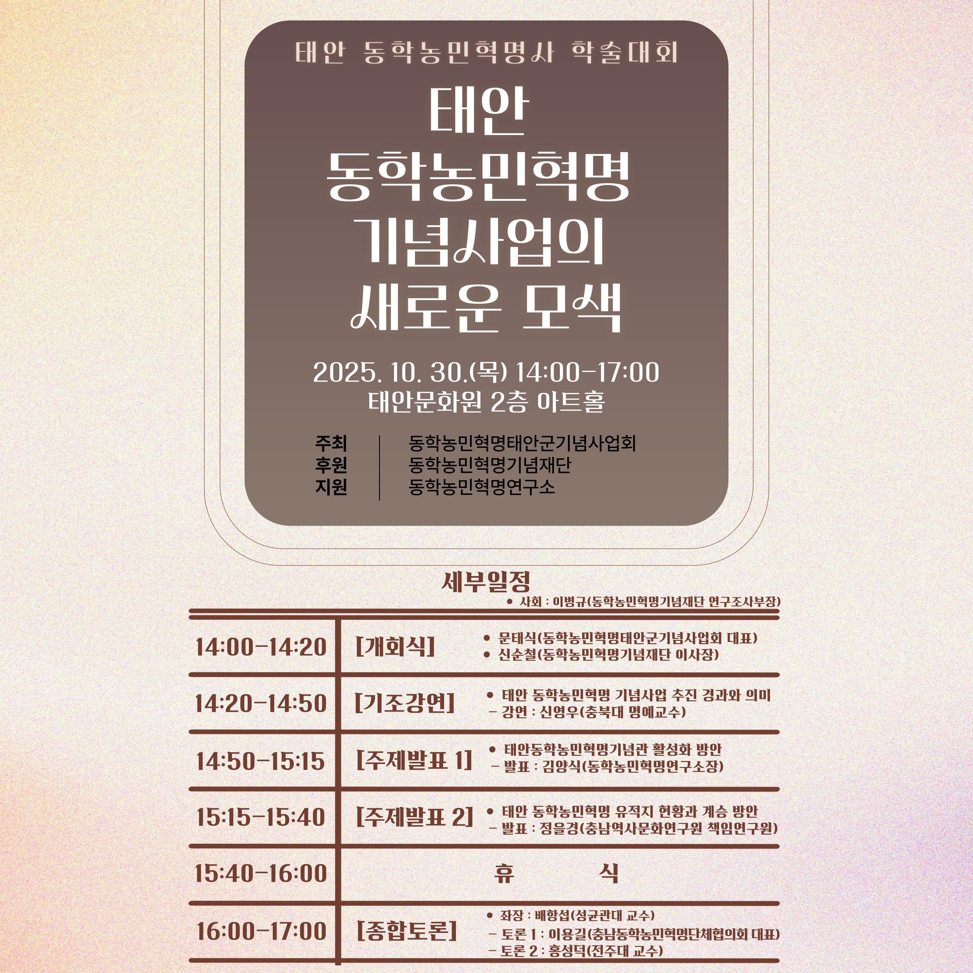 태안 동학농민혁명사 학술대회-동학농민혁명기념사업의 새로운 모색 공지