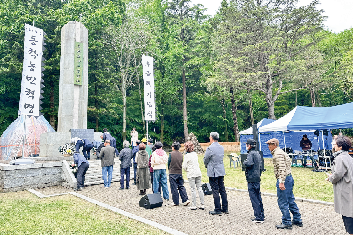 기념식은 우금티 위령탑 앞에서 진행되었다. 위령탑은 1973년, 우금티 전투에서 쓰러진 수많은 동학농민군의 넋을 위로하기 위해 건립된 것이다.