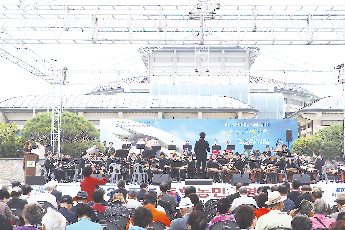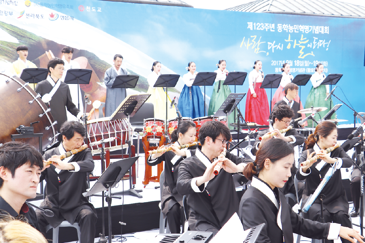 지난 9월 18일과 19일 이틀간 동학농민군 최초 전승지인 황토현전적지에서 제123주년 동학농민혁명기념대회가 펼쳐졌다. 이날 대회에는 송하진 전라북도지사, 김생기 정읍시장, 장학수·최은희 전북도의회 문화건설안전위원회 부위원장, 김춘진 더불어민주당 전북도당위원장, 유진섭 정읍시의회 의장, 안길만 정읍시의회 경제건설위원장을 비롯하여 동학농민혁명 참여자 유족, 천도교인, 전국 기념사업단체 대표자 등 700여 명이 참가하여 성황을 이루었다. 이틀간에 걸쳐 펼쳐진 기념대회는 18일 오후 2시부터 ‘동학농민혁명과 한국 근현대사’라는 주제의 학술대회와 함께 역사체험 프로그램 및 문화공연이 펼쳐졌고, 19일에는 길놀이를 시작으로 제123주년 기념식, 특별공연, 오찬 순으로 진행되었다. 기념식에서는 동학농민혁명 정신선양사업의 확산을 위해 기념재단에서 추진한 동학농민혁명 주제 스토리텔링 공모전에서 입상한 작품에 대한 시상식이 있었다, 수상은 대상에 김진영(갑오백성, 연극 시나리오), 최우수상에 문수진(뮤지컬 대본), 우수상에 이원희(연극 시나리오) 씨가 각각 수상하였다. 또한 동학농민혁명 정신선양사업에 기여한 사람에게 공로패가 수여되었다. 공로패는 함기영(동학농민혁명유족회 이사), 채길순(명지전문대 교수), 진윤식(고창동학농민혁명기념사업회 부이사장) 수상하였다. 한편, 동학농민혁명유족회 이기곤 이사장은 동학농민혁명 가치를 높이고 그 정신 계승·발전에 기여한 김생기 정읍시장에게 30여만 유족을 대표하여 감사패를 전달하였다.