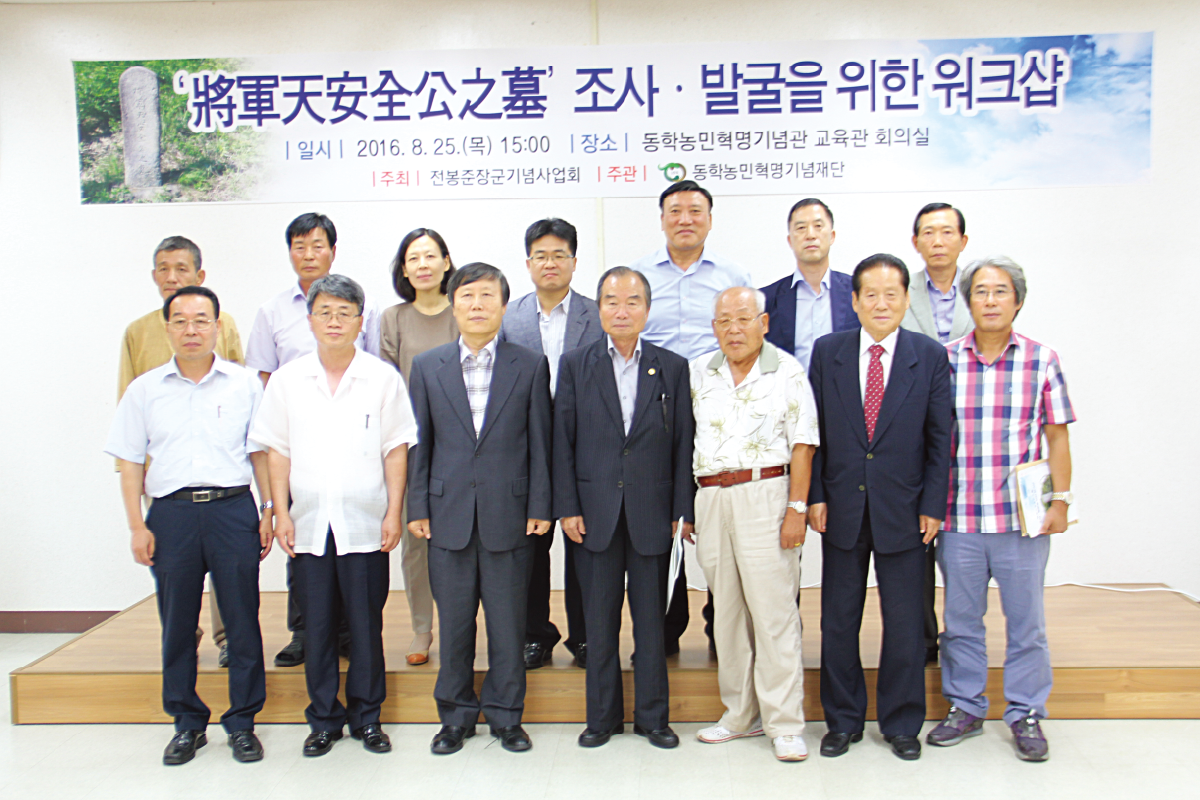 8월 25일 동학농민혁명기념재단 교육관에서 (사)전봉준장군기념사업회가 주최하고, 동학농민혁명기념재단이 주관한 [장군천안전공지묘(將軍天安全公之墓) 조사·발굴을 위한 워크샵]이 개최되었다. 김생기 정읍시장, 이기곤 전국동학농민혁명유족회장, 전해철 전봉준장군기념사업회 이사장 등이 참석한 워크숍에서는 조광환 동학역사문화연구소장의 ‘將軍天安全公之墓 발견 경위와 관련 내용’, 송정수 전북대교수의 ‘將軍天安全公之墓의 주인공은 전봉준 장군인가’라는 주제발표 이후 추진위원들의 토론으로 진행되었다.