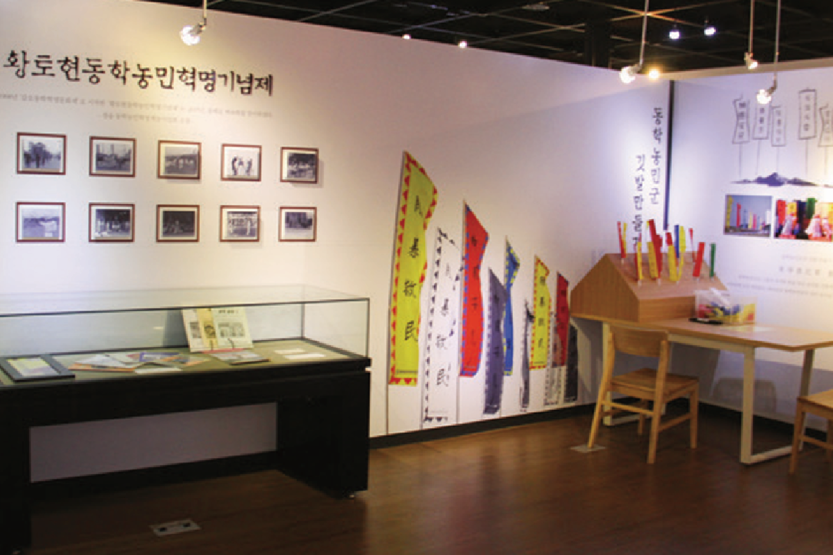 1960년에 일어난 4.19혁명으로 민중의식이 고양되는 사회적 분위기 속에서 1962년 6월 서울에서 [갑오동학혁명기념사업협회]가 창립되면서 반란사건으로 치부되던 이 사건이 혁명으로 명명되기 시작했고, 그런 흐름 속에서 1963년 10월 황토현전적지에 ‘갑오동학혁명기념탑’이 세워졌다. 이후 황토현적적지는 1980년대 국가사적(제295호)으로 지정되었고, 구기념관과 전봉준동상 등이 건립되었다. 나아가 2004년 동학농민혁명기념관과 교육관이 건립되었는데 이런 과정을 한눈에 볼 수 있도록 구성하였다.