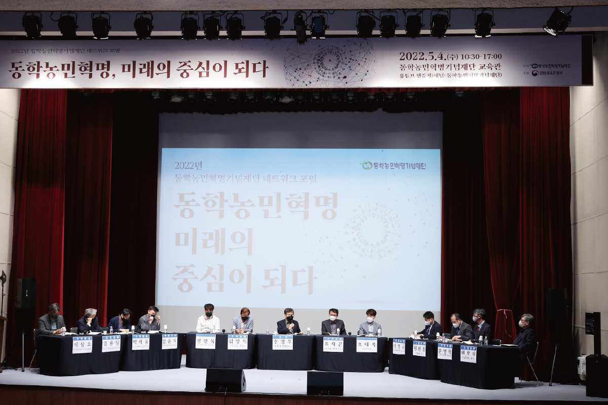 지난 5월 4일 동학농민혁명기념공원 내 교육관에서 ‘동학농민혁명, 미래의 중심이 되다’라는 주제로 2022년 동학농민혁명기념재단 네트워크 포럼이 열렸다. 코로나19 확산 방지를 위해 유튜브 생중계(채널:동학농민혁명기념재단) 형태로 진행된 포럼은 신순철 동학농민혁명기념재단 이사장의 인사말씀, 주영채 (사)동학농민혁명유족회 이사장의 축사로 이어진 개회식으로 그 막을 열었다.