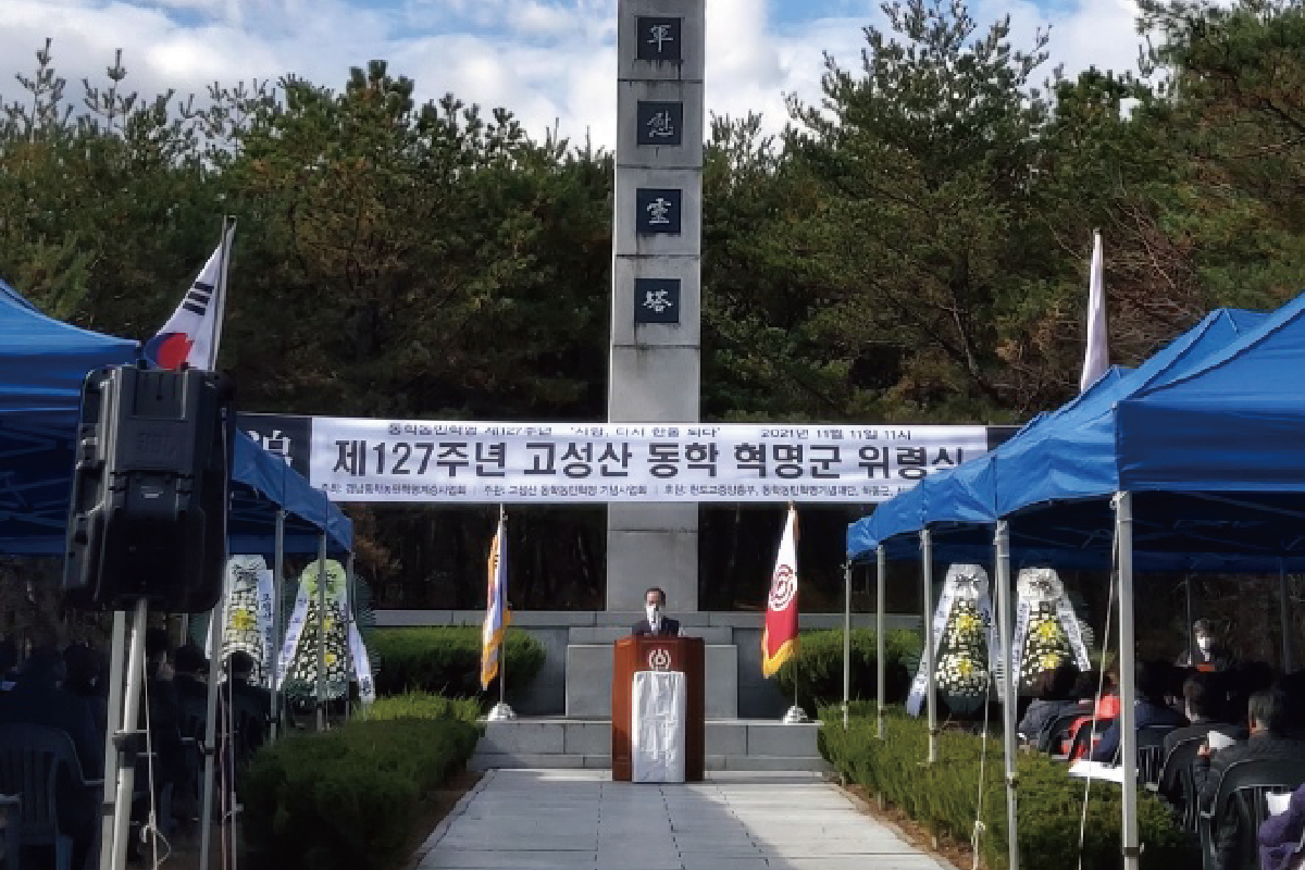2021년 11월 11일 경상남도 하동군 옥종면 북방리 고성산동학혁명위령탑에서 경남동학농민혁명계승사업회(대표 김희수)가 주최하고 하동 고성산동학혁명군기념사업회(대표 하재호)의 주관으로 제127주년 고성산 동학혁명군 위령식이 거행되었다. 제1부에서는 국민의례를 시작으로 동학농민혁명 12개조 폐정개혁안 낭독, 추념사 및 추모사, 동학혁명군 추모가 합창 순으로 진행되었다. 제2부에서는 하동지역 동학농민군의 활동을 중심으로 문찬인(국사편찬위원회 사료조사위원)의 강좌와 함께 동학농민혁명 참여자 독립유공자 서훈을 촉구하는 결의도 있었다. 이번 행사에는 경남 하동지역의 많은 주민들과 박인준(천도교 종무원장), 정의맹(연원회의장), 박창수(감사원장), 장구갑(사회문화관장), 하재호(산청동학농민혁명기념사업회장), 허식(하동군 옥정면장), 김성채(하동군 문화체육과 주무관), 장호봉(하동군 옥종면 농민회장), 하승철(전 부산진해 자유구역 경제청장) 등이 참석하였다.