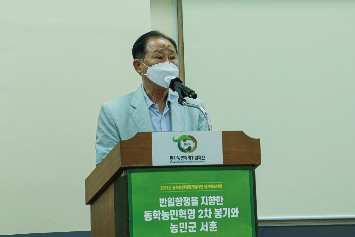 지난 7월 21일 동학농민혁명기념재단 주최, 문화체육관광부 후원으로 ‘반일항쟁을 지향한 동학농민혁명 2차 봉기와 농민군 서훈’이라는 주제 아래 2021 동학농민혁명기념재단 정기학술대회가 열렸다. 코로나19 확산 방지를 위해 유튜브 생중계(채널: 동학농민혁명기념재단)로 진행된 이날 학술대회는 이형규 동학농민혁명기념재단 이사장의 대회사, 주영채 동학농민혁명유족회 회장의 축사로 시작되었다.