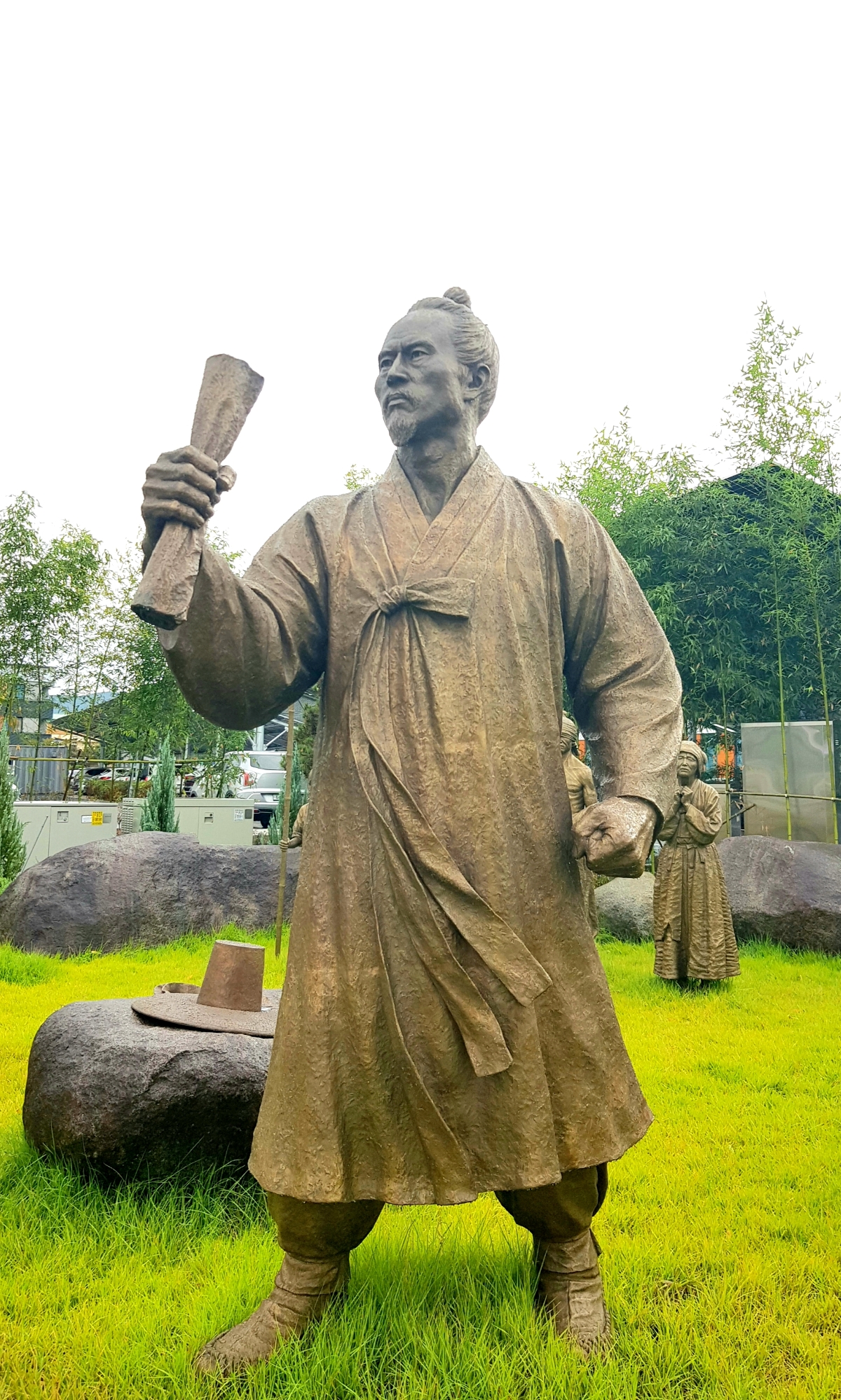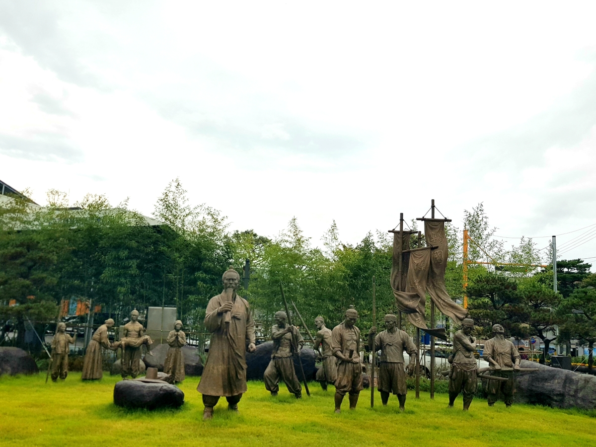 문) 동상이 서 있는 곳은 많은 사람이 오가는 고창군청 앞 회전로타리 소공원입니다. 이곳은 고창의 주요한 문화유산인 고창 모양성으로 들어가는 길목이라 고창군민은 물론이고 고창을 찾는 많은 국내외 관광객이 드나드는 길목입니다. 작품에 대한 방문객들의 평가가 매우 좋고, 지나가다가 차를 세우고 동상 앞에서 사진을 찍는 사람들이 많아졌다고 합니다. 이런 얘기들을 들었을 때 작품을 제작한 사람으로서 감회가 남다를 것 같습니다. 어떻습니까?