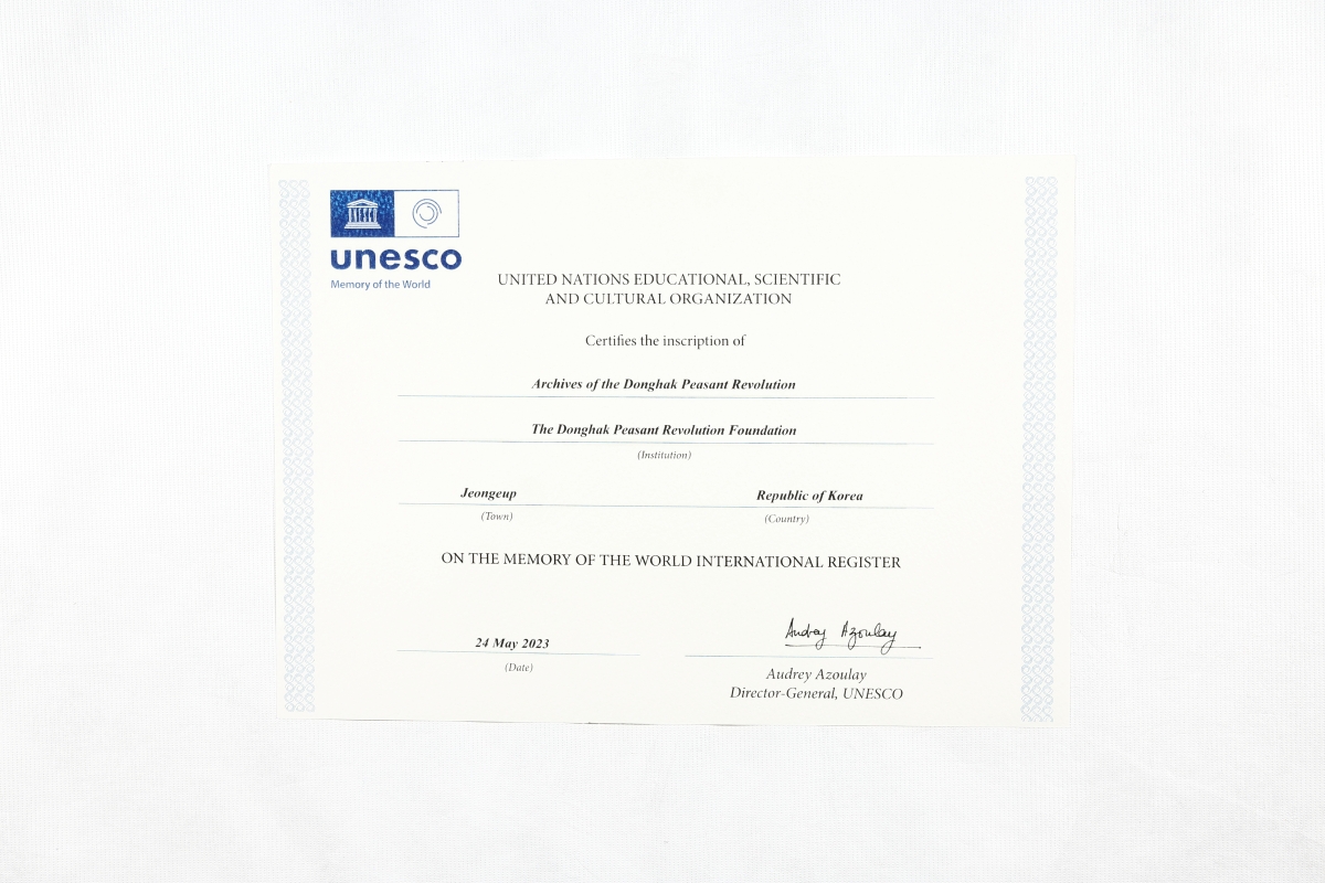 ■동학농민혁명기록물 유네스코 세계기록유산 등재 인증서