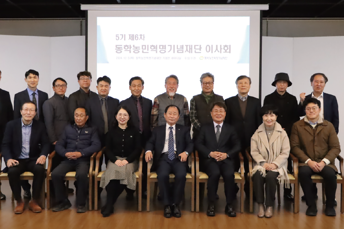 2024년 12월 5일(목) 동학농민혁명기념재단 세미나실에서 5기 제6차 이사회가 열렸다. 먼저 2024년도 정신 선양사업 추진현황과 동학농민혁명기록물 세계기록유산 홍보사업 등이 보고되었다. 이어 2025년 예산 및 사업계획 수립안이 원안대로 심의 의결되었다.
