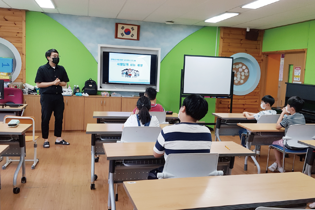 정명광: 저는 ‘학예연구사’라는 직업에 사명감과 자부심을 갖고 있는데요. 가장 큰 이유는 학생들을 직접 만나기 때문입니다. 교구재 및 보드게임 등을 개발하는 것이 힘들 때도 있지만 아이들이 적극적으로 참여하는 모습을 보면 힘든 것을 잊고 다시 매진할 수 있는 원동력이 됩니다. 특히 기념관을 찾아오기 힘든 시골 학교에 교육 프로그램을 진행한 적이 있었는데 아이들이 너무 순수하고 밝게 맞이해 주는 모습이 너무 감사했습니다. 교육을 마친 후 아이들이 “선생님, 재미있어요. 또 수업 받고 싶어요. 다음에 꼭 다시 와주세요.” 이런 얘기해 줄 때 많은 보람을 느낍니다.