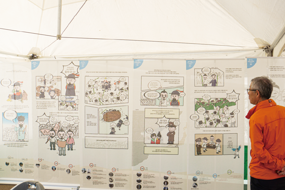 지난 11월 4일 아산시 동학농민혁명 추모문화제가 충남 아산시 온천역 광장에서 펼쳐졌다. 이날 행사를 보다 풍성하게 하기 위하여 재단은 ‘찾아가는 동학농민혁명 기념관’ 전시를 개최하였다. 재단에서 추진하고 있는 ‘찾아가는 기념관’은 동학농민혁명 애국애족 정신을 범국민적으로 알리기 위하여 전국의 교육기관이나 다중이용시설, 지역축제 및 행사장 등을 찾아가는 방문객 중심의 현장 전시이다.