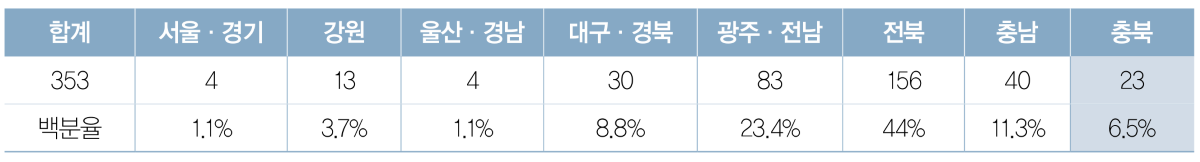 충북지역 동학농민혁명 유적지 및 기념시설물 현황