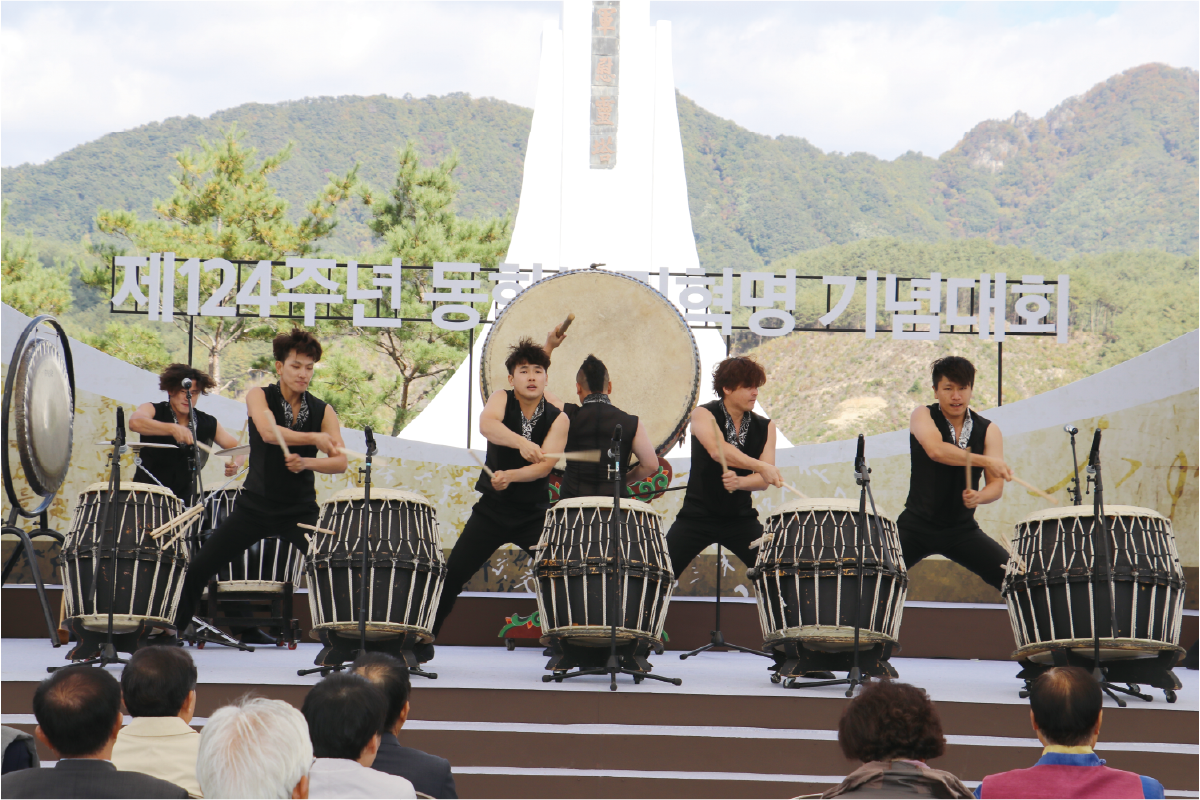 제124주년 동학농민혁명 기념대회가 지난 10월 10일과 11일 이틀간 강원도 홍천군 서석면 자작고개전적지 「동학혁명군위령탑」에서 “동학농민혁명, 평화의 꽃으로 활짝 피어라”라는 주제로 펼쳐졌다. 자작고개전적지는 124년 전 1894년 11월 20일(양)과 21일 동학농민군이 민보군을 맞아 치열하게 전투를 벌여 농민군 800여명이 전사한 곳으로, 이곳에는 희생된 농민군의 넋을 기리기 위해 1977년에 건립한 「동학혁명군위령탑」이 서 있다.