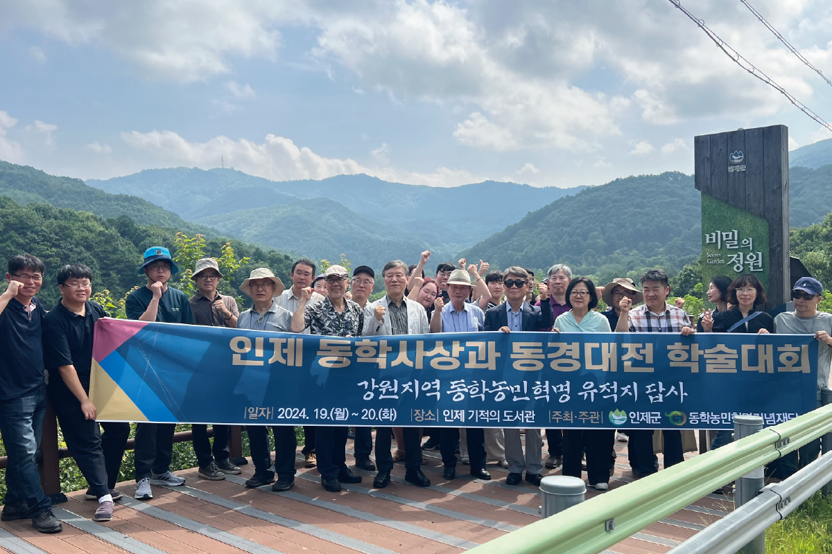 지난 8월 19일과 20일 이틀간 동학농민혁명기념재단과 강원특별자치도 인제군 공동주최로 2024, 강원 인제 동학사상과 동경대전 학술대회가 개최되었다. ‘인제, 동학정신에서 동학농민혁명으로’라는 주제 아래 인제군 기적의 도서관에서 펼쳐진 학술대회는 첫째 날 개막식에 이어 주제 발표와 토론이 진행되었고, 둘째 날에는 동학 2대 교주 해월 최시형 선생이 동학의 경전(經典) 『동경대전』(東經大全)을 간행한 인제군 남면 갑둔리 등의 유적지를 답사하였다.