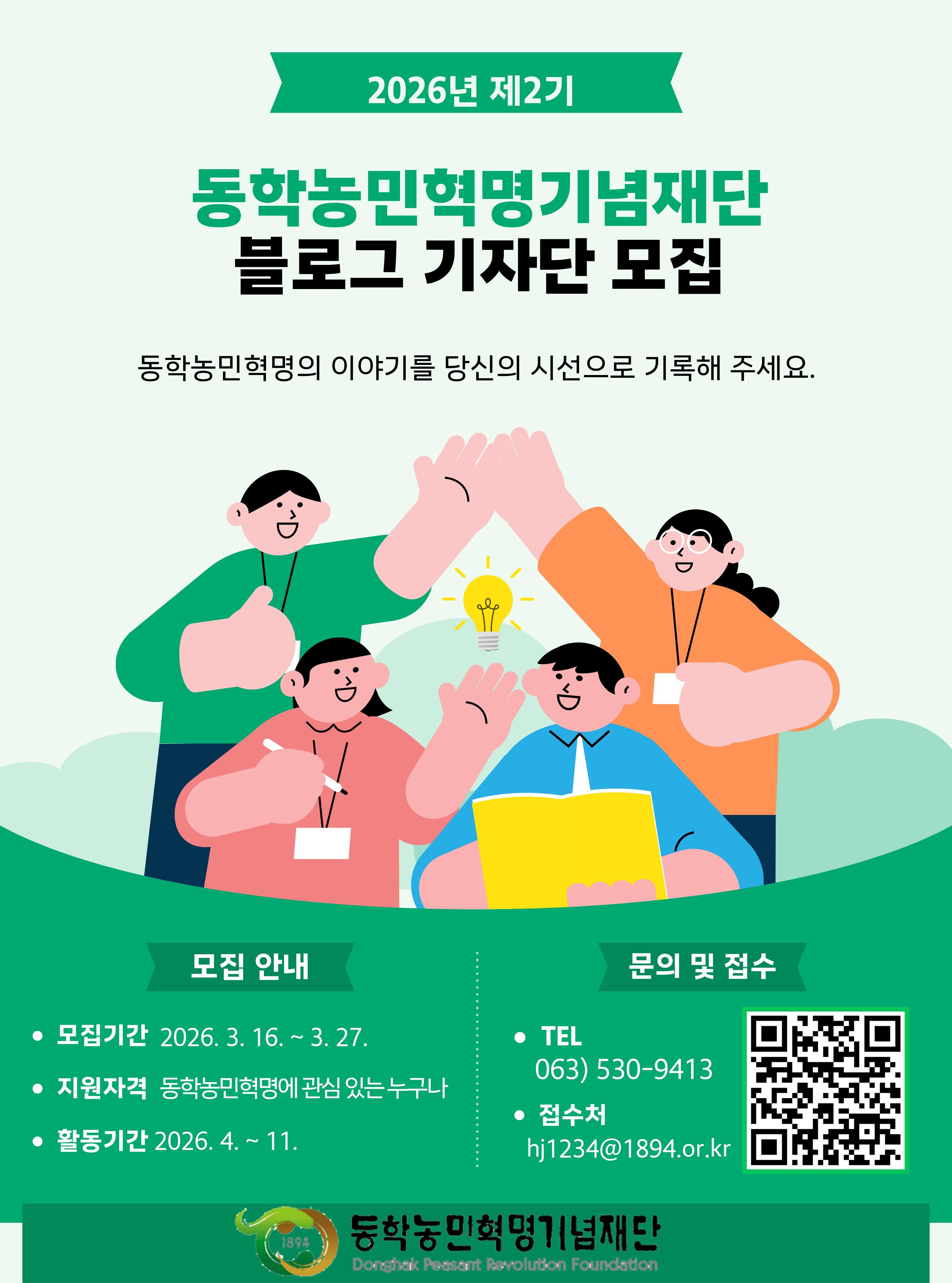 56149 전북특별자치도 정읍시 덕천면 동학로 742 TEL. 063-530-9400 FAX. 063-538-2893 E-mail. 1894@1894.or.kr