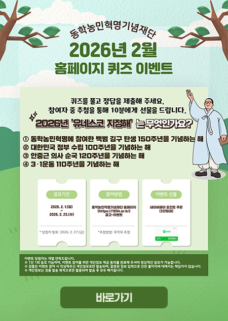 동학농민혁명기념재단 ㅣ 사업자정보확인 404-82-08587 ㅣ 통신판매업신고 2023-전북정읍-0046호