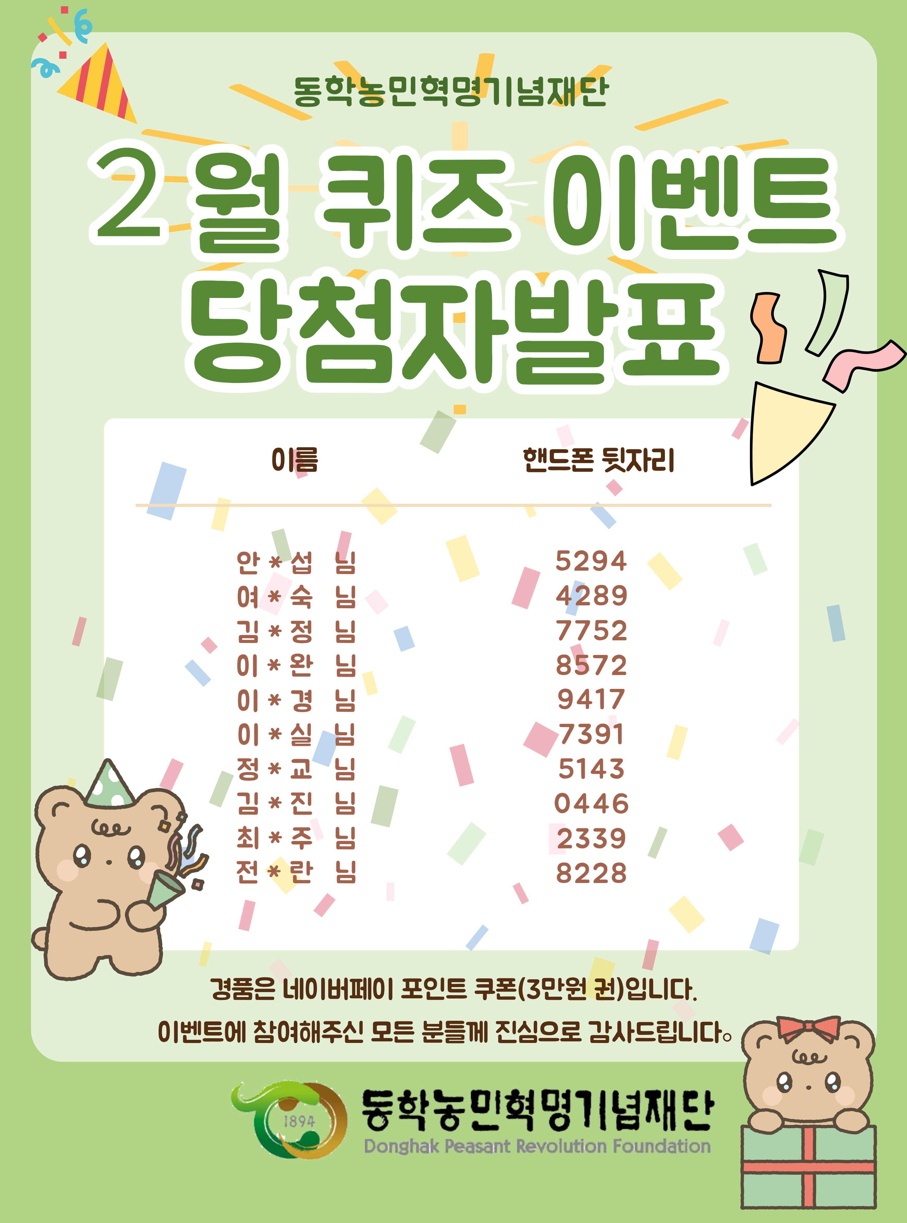 동학농민혁명기념재단 ㅣ 사업자정보확인 404-82-08587 ㅣ 통신판매업신고 2023-전북정읍-0046호