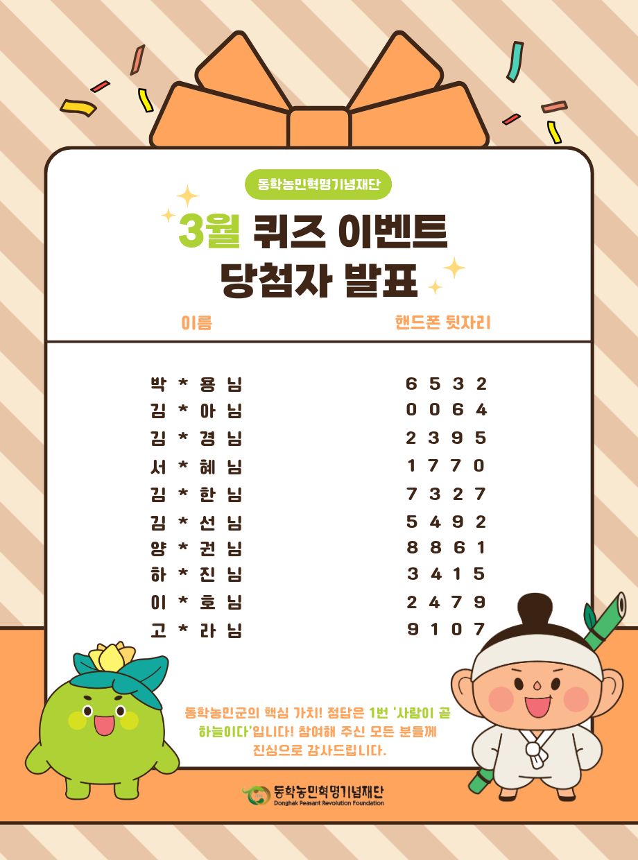 2026년 3월 퀴즈 이벤트 당첨 발표 공지