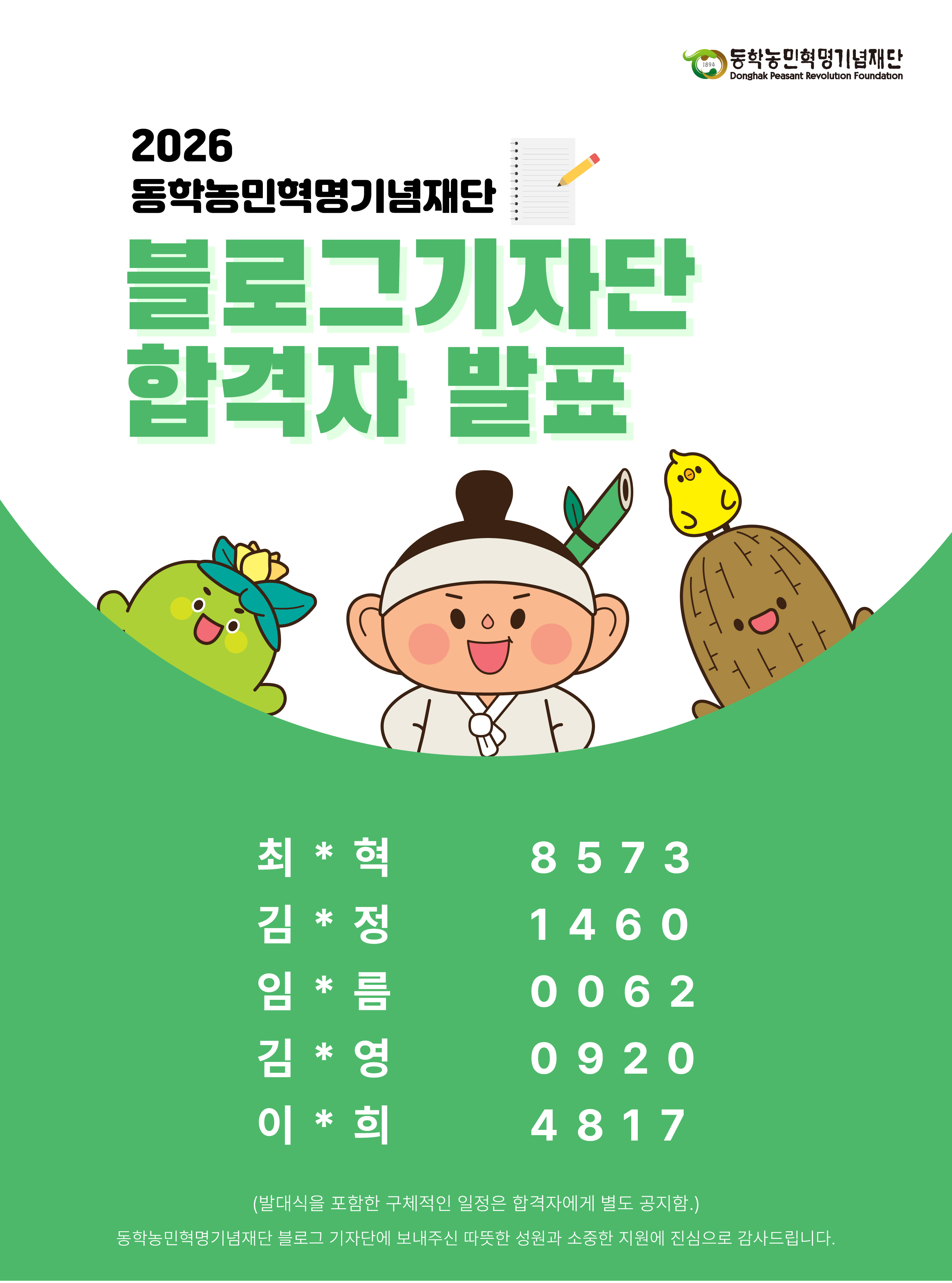 2026 동학농민혁명기념재단 블로그 기자단 최종 합격자 발표 공지