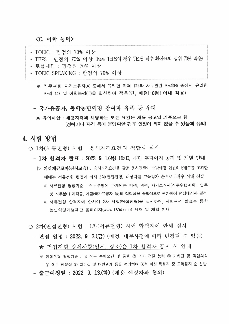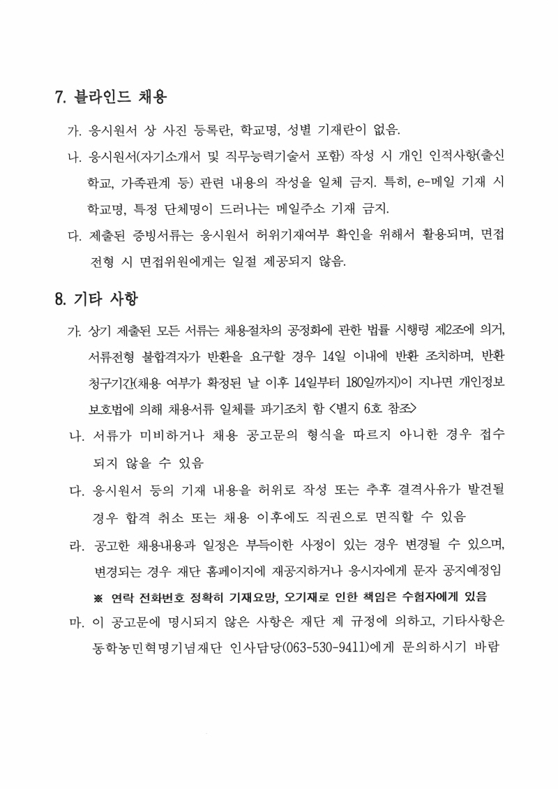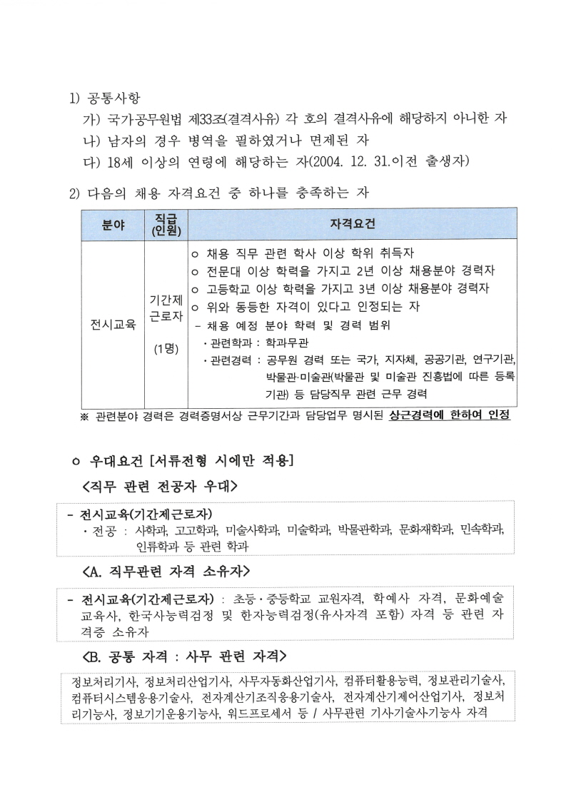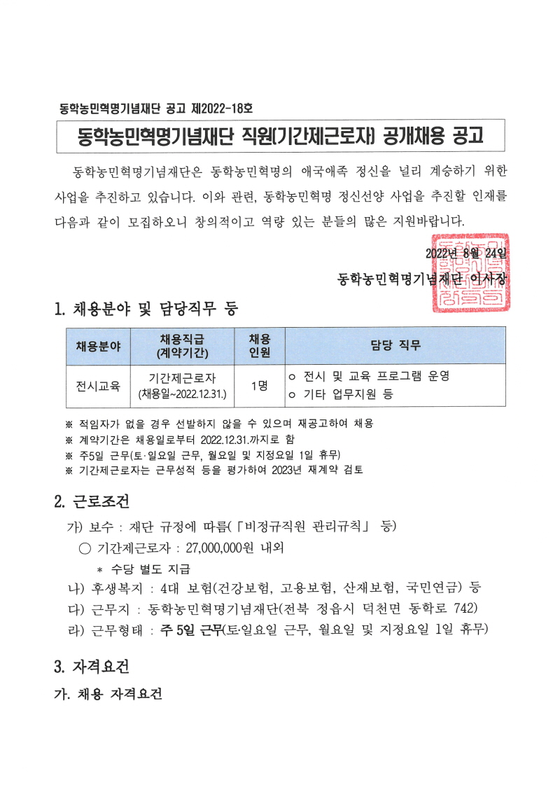 직원(기간제근로자) 공개채용 공고