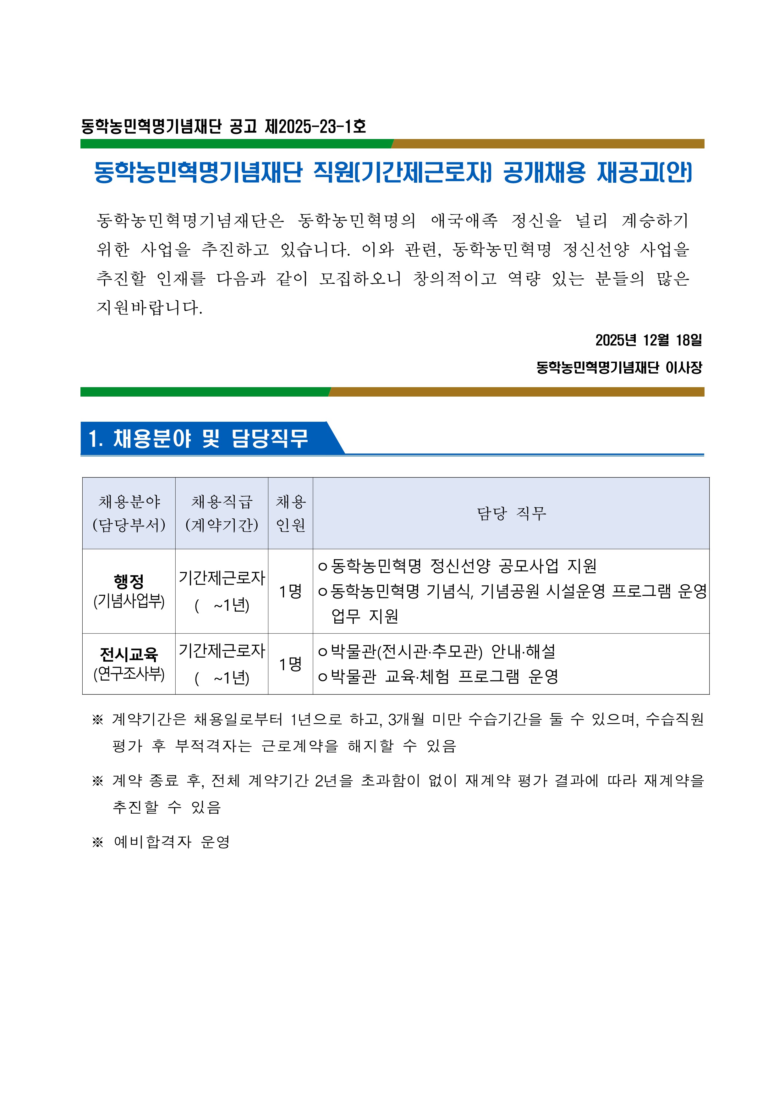 [25-23-1호]직원 공개채용(기간제 2명_행정, 전시교육) 재공고(안).hwp