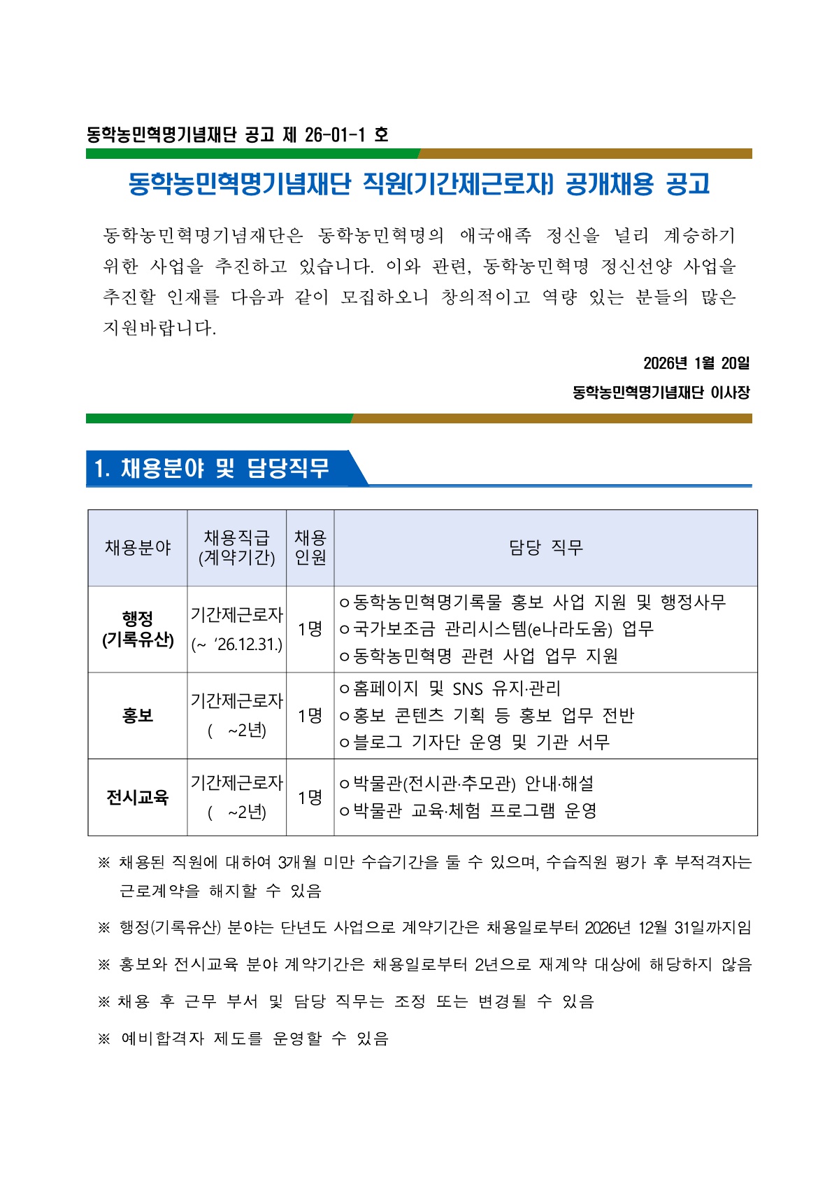 직원(기간제_행정/기록유산, 홍보, 전시교육) 공개채용 공고