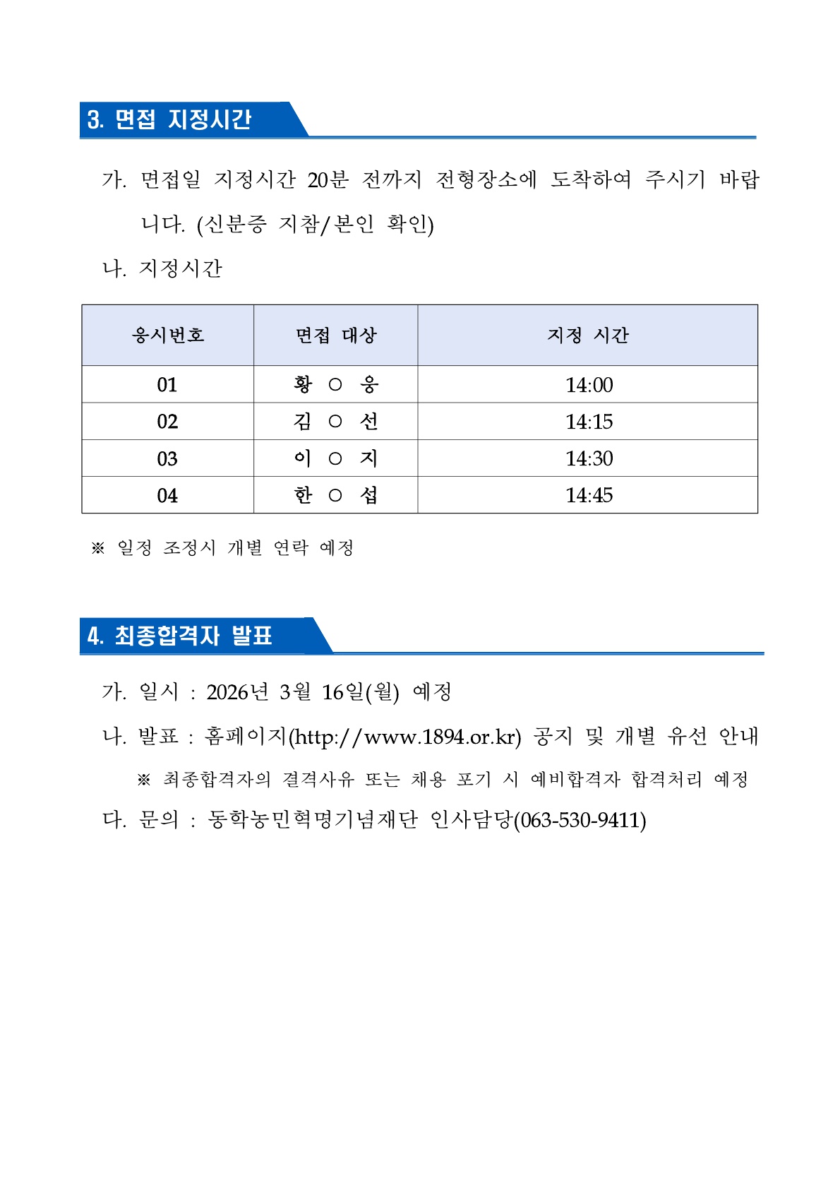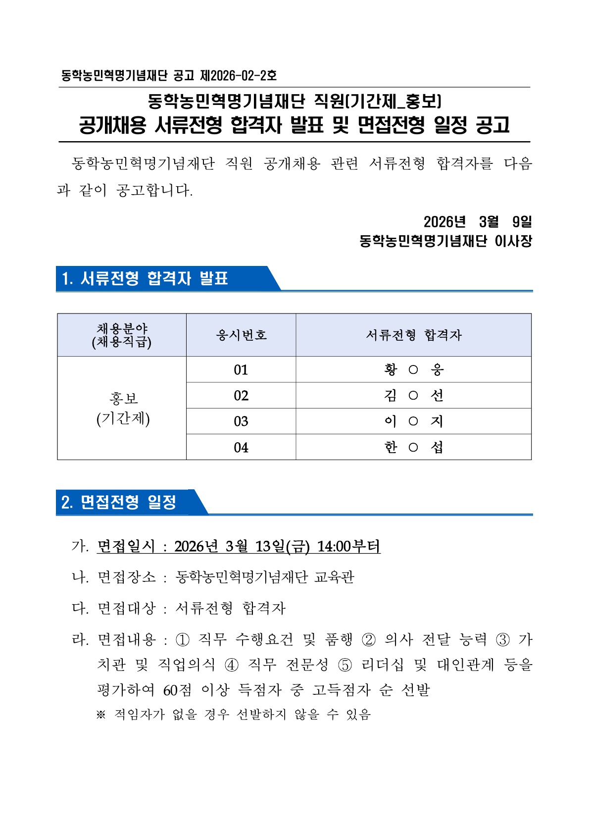 직원(기간제_홍보) 공개채용 서류전형 합격자 발표