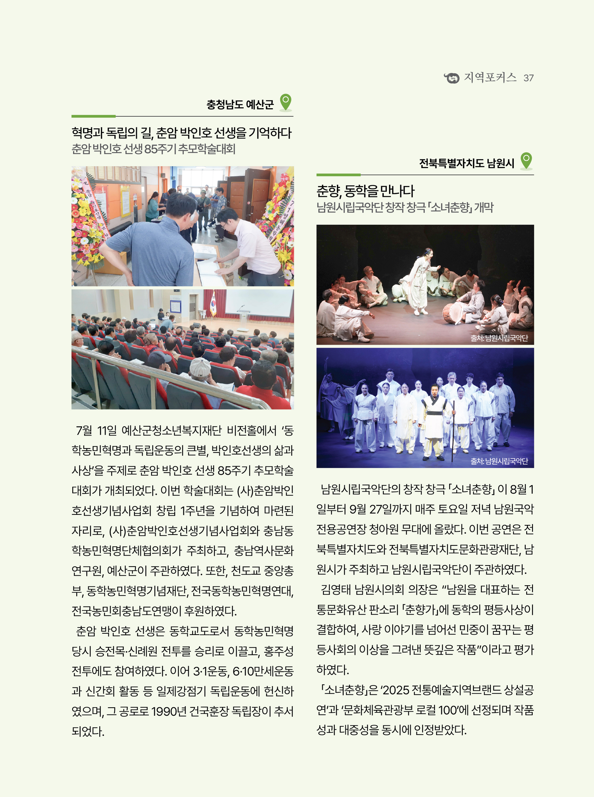 혁명과 독립의 길, 춘암 박인호 선생을 기억하다 / 춘향, 동학을 만나다