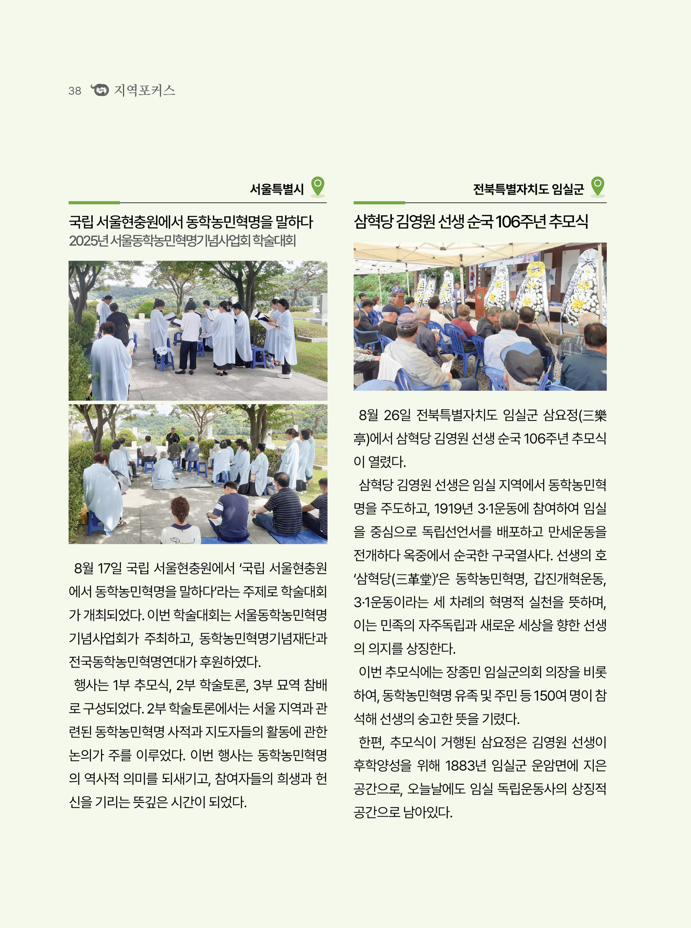 국립 서울현충원에서 동학농민혁명을 말하다 / 삼혁당 김영원 선생 순국 106주년 추모식