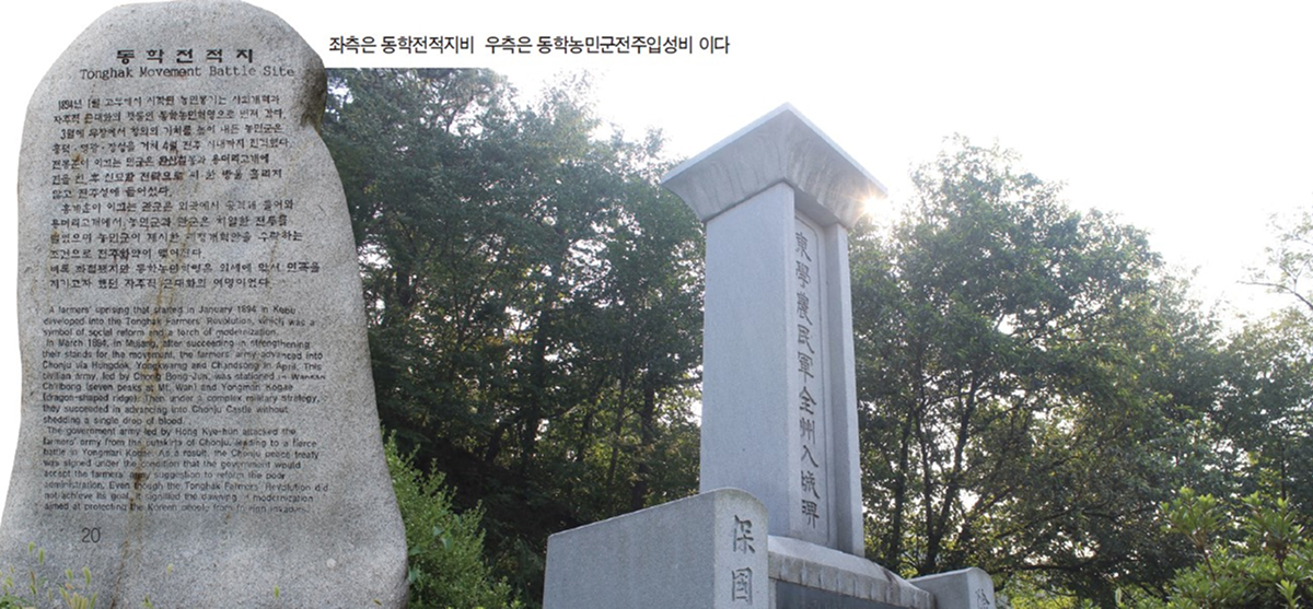 좌측은 동학전적지비, 우측은 동학농민군전주입성비이다.