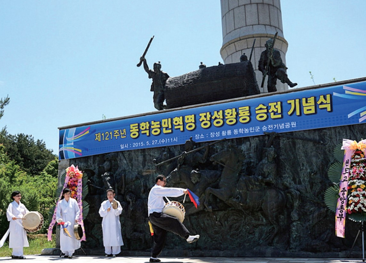 지난 5월 27일(수) 장성황룡 동학농민군승전기념공원에서 제121주년 장성 황룡전투 승전기념식이 열렸다. 광주・전남동학농민혁명기념추진위원회와 천도교 중앙총부, 장성군 농민회가 동시 주관한 이번 기념식은 이상식 광주・전남동학농민혁명기념사업회 회장의 내빈소개 이후, 동학농민군 12개조 폐정개혁안 낭독, 박남수 천도교 교령의 기념사, 정찬균 장성군 부군수의 환영사, 김대곤 동학농민혁명기념재단 이사장의 축사로 이어졌다.