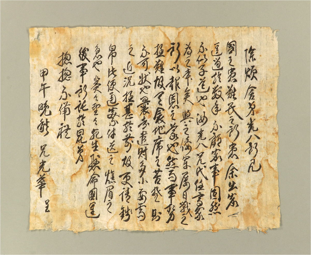 ▲ 동학농민군 유광화 편지 1894년 29 × 24cm 동학농민혁명기념관_김순덕 기증|1894년 동학농민군 유광화가 고향에 있는 동생 유광팔에게 보낸 편지이다.