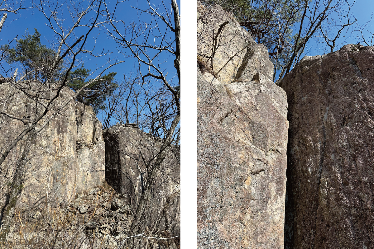 중간중간 길이 없는 곳이 나올 때마다 이병규 부장이 방향을 짚어줘서 그나마 헤매지 않고 항전지를 숨겨 품은 절벽 앞에 다다를 수 있었다. 시간은 케이블카에서 내리고 난 뒤 1시간 반 가까이 지나 있었다.
