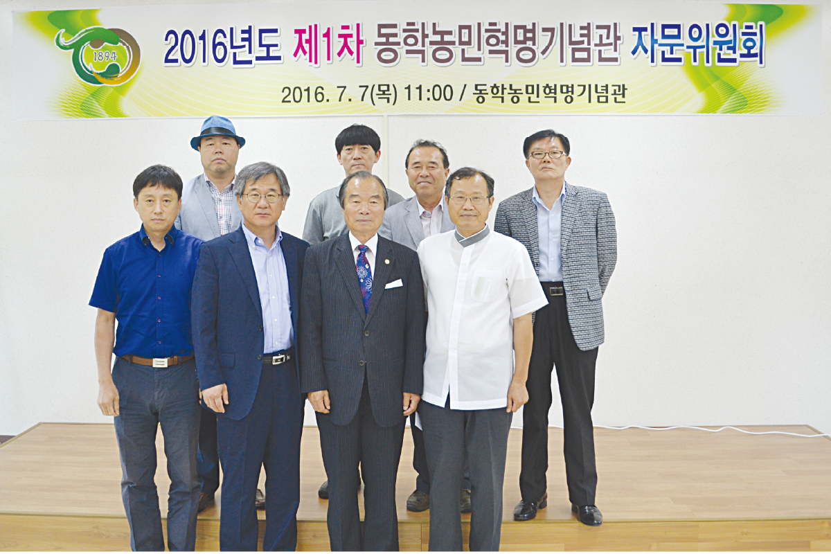 7월 7일 동학농민혁명기념재단 교육관에서 [2016년도 제1차 동학농민혁명기념관 자문위원회]가 개최하였다. 안건으로는 2016년도 하반기 기획전시 추진, 동학농민혁명 역사문화벨트조성 학술용역 추진, 동학농민혁명기념관 위탁 재계약 추진, 2017년도 동학농민혁명기념관 기획전시 주제 논의, 동학농민혁명기념관 유물구입 방안 등을 논의하였다.