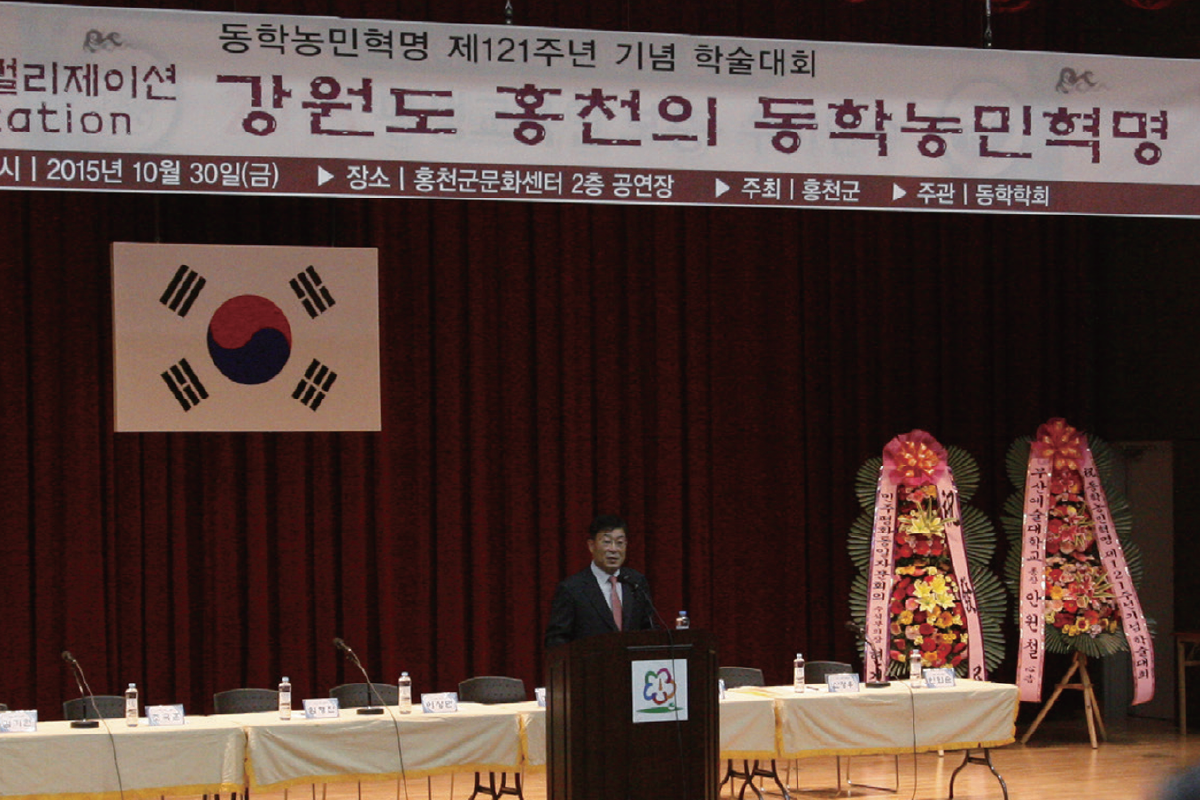 지난 10월 30일(금) 홍천군문화센터에서 [동학농민혁명 제121주년 기념 추계학술대회]가 개최되었다. 홍천군(군수 노승락)이 주최하고, 동학학회(회장 최민자)가 주관하는 이번 학술대회는 <동학의 글로컬리제이션 Glocalization -강원도 홍천의 동학농민혁명>이라는 주제 아래 최근 공개된 일본군의 진중일지 등을 토대로 홍천지역 동학농민혁명의 역사적 위상을 입증하고 새로운 연구 성과를 학계에 알리는 것을 목표로 했다.