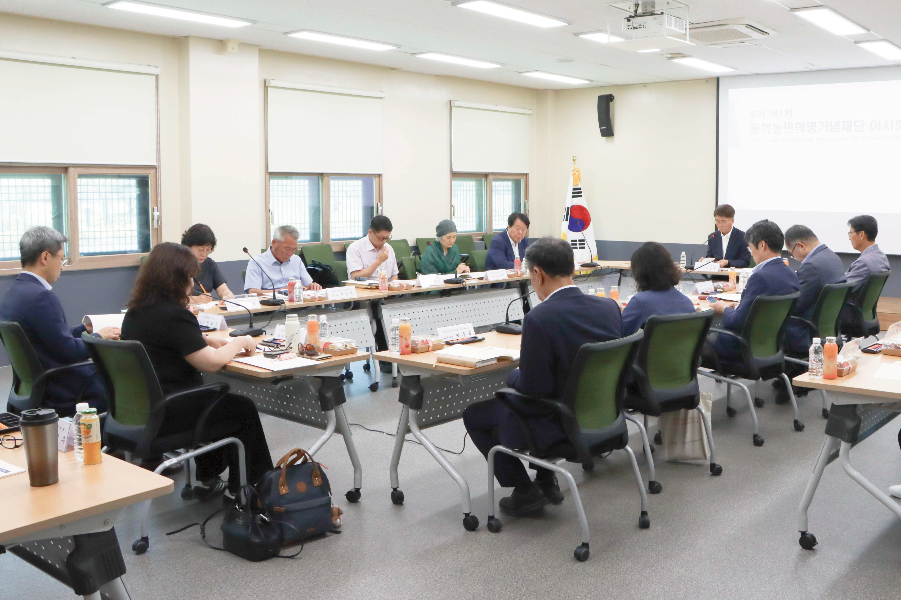 이날 회의에는 신순철 이사장을 포함한 9명의 이사와 2명의 당연직 이사, 감사 등 총 13명이 참석하였다. 신순철 이사장은 인사말을 통해 “기념재단이 출범한 지 벌써 15년이 되었다. 동학농민혁명에 대한 깊은 애정과 각 분야 전문성을 갖춘 분들을 이사로 모시게 되어 기쁘다. 앞으로 명예회복, 전국화, 세계화를 위한 기념재단의 사업에 힘과 지혜를 모아주시길 부탁드린다”고 밝혔다.