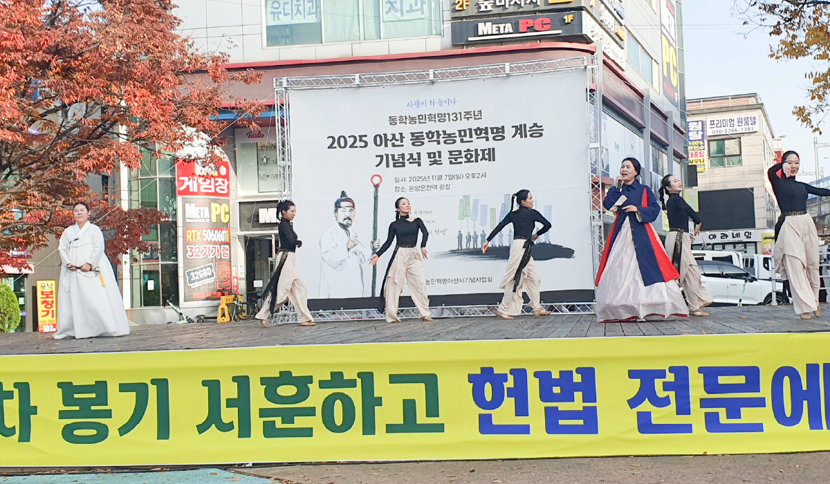 11월 9일 온양온천역 광장에서 동학농민혁명아산기념사업회(이사장 장명진) 주최로 2025 아산 동학농민혁명 기념식 및 문화제가 열렸다. 기념식은 ‘1894 동학혁명에서 2025 인내천 응원봉 빛의 혁명까지’를 주제로 진행되었다.