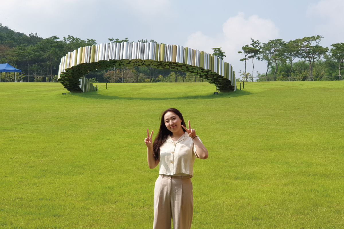 이서영 / 전주 예수대학교 간호학과 <2023.8.방문> 저는 정읍에 살고 있어서 가끔 일상의 복잡함에서 벗어나 평화로운 마음을 갖고 싶을 때 넓은 잔디와 예쁜 꽃들이 피어 있는 동학농민혁명기념관을 찾아가곤 했습니다. 동학농민혁명기념공원이 완공되기 전에는 드넓은 벌판이었는데 지금은 공원 안에 박물관을 비롯하여 여러 시설과 상징 조형물들이 세워져 있습니다. 특히 공원 곳곳에 나무와 산책로가 잘 조성되어 있어 산책하기에 더없이 좋은 공원입니다. 기념공원에 설치된 여러 기념시설물 중에서도 내 눈길을 사로잡는 것은 공원 중심에 있는 ‘울림의 기둥’이었습니다. 울림의 기둥은 동학농민혁명 당시 동학농민군이 봉기한 전국 90개의 지역을 상징하는 조형물이라고 합니다. 이 조형물을 보면서 동학농민혁명이 전라도에서만 일어난 것이 아니라 강원도, 경상도, 황해도에 이르기까지 전국적으로 일어났다는 것을 알게 되었습니다.