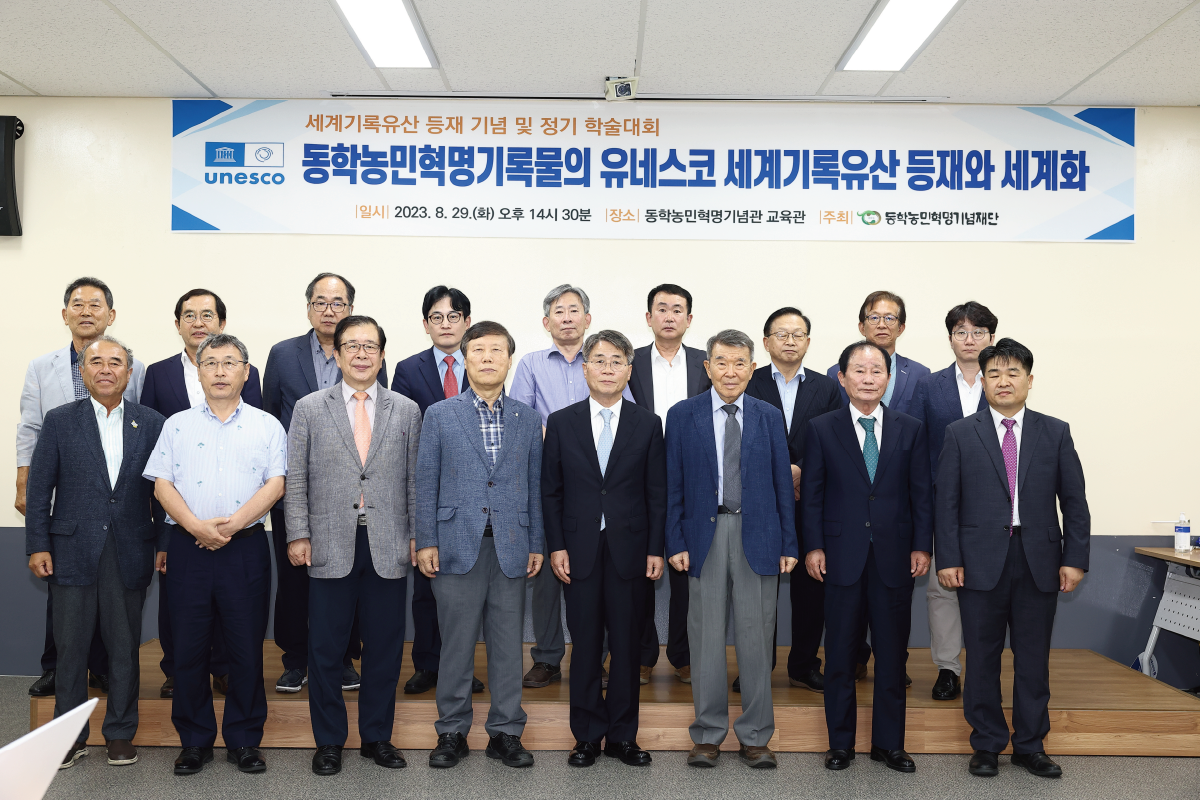 지난 8월 29일(화) 동학농민혁명기념재단 교육관에서 2023년 동학농민혁명기념재단 정기 학술대회가 ‘동학농민혁명기록물의 유네스코 세계기록유산 등재와 세계화’를 주제로 개최되었다. 동학농민혁명 기록물 유네스코 세계기록유산(Memory of the World) 등재를 기념하여 열린 이번 학술대회는 개회식, 주제발표, 종합토론 순으로 진행되었다.