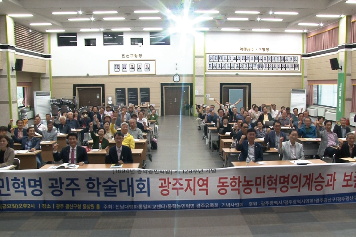 지난 7월 7일 전남 광주광역시 광산구청 윤상원 홀에서 광주동학농민혁명유족회 주최로 ‘광주지역 동학농민혁명의 계승과 보존’이라는 주제 아래 <2023, 동학농민민혁명 광주학술대회>가 개최되었다. 이날 학술대회는 이상식(광주·전남동학농민혁명기념사업회 회장, 前전남대 인문대학장) 교수의 「동학농민혁명의 명예회복과 서훈 추진」이라는 기조강연으로 시작되었다. 이어진 주제발표는 「나주 북동부에서 희생당한 동학농민군」(박용규 민족문제연구소 연구위원), 「동학농민혁명 정신선양 방안」(김재기 전남대 정치외교학과) 순으로 이어졌다. (사)동학농민혁명유족회 주영채 이사장이 좌장을 맡은 주제별 토론은 나주목향토학연구회 나천수 회장, 동학농민혁명기념재단 문병학 기획운영부장이 각각 토론하였다.