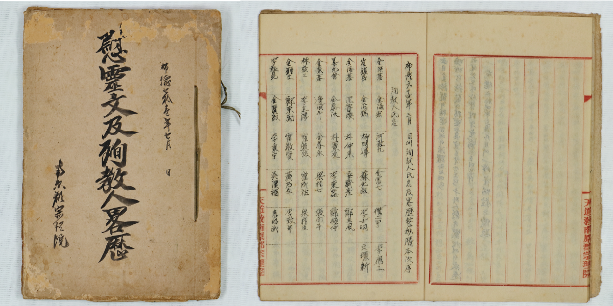 『위령문 및 순교인약력』(필사본 표지) 『위령문 및 순교인약력』(내용, 명단)