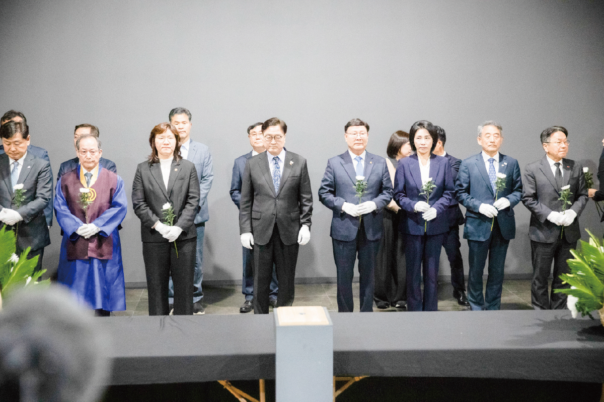 기념식은 KBS 최원정 아나운서의 사회로 진행되었으며, 내빈 헌화와 묵념을 시작으로 ▲‘녹두꽃 시민합창단’ 공연 ▲‘나빌레라 예술단’의 무대 공연 ▲유족에 대한 통지서 전달식 ▲국악인 김주리의 공연 등 다채로운 순서가 이어졌다.