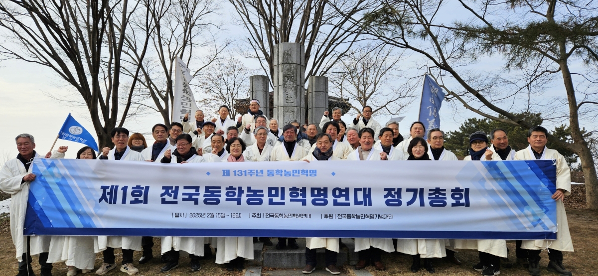 215~216일 양일간 2025년도 제1회 전국동학농민혁명연대(대표 고재국, 전국 동학농민혁명 관련 50개 단체) 정기총회가 개최되었다. 15일 이희청(()동학농민혁명고부기념사업회 이사장)의 초청으로 제131주년 고부농민봉기 재현행사에 참여한 후, 기념재단 기념사업부 한민욱 부장의 안내와 해설로 동학농민혁명 기념공원을 비롯한 백산봉기지, 무명농민군위령탑, 사발통문작성지 등 정읍 일대의 동학농민혁명 관련 유적지를 답사하였다. 유적지 답사를 마친 후 기념재단 교육관 강당에서 기념재단 연구조사부 이병규 부장의 동학농민혁명 기록물 유네스코 세계기록유산 등재에 대한 특강이 있었다.