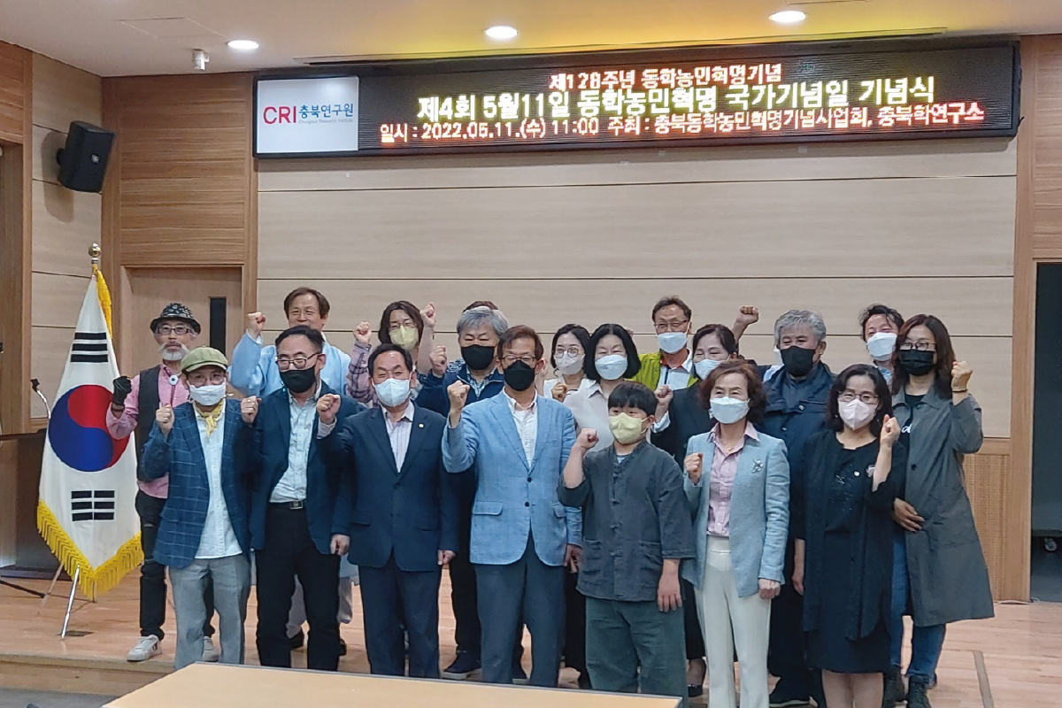 지난 5월 11일 충북동학농민혁명기념사업회(회장 김양식) 주최로 청주시 충북연구원 대회의실에서 제128주년 동학농민혁명 기념식 및 제4회 충북동학농민혁명 기념식이 열렸다. 기념식은 대금연주를 시작으로 개회사 선언, 국민의례, 동학농민혁명 홍보영상 상영, 기념사, 축사, 시낭송 등으로 진행되었다. 국가기념일 제정 4년을 맞아 제128주년 동학농민혁명기념행사를 성대하게 개최한 충북동학농민혁명기념사업회는 오는 10월 15일 동학깃발문화제와 12월 6일 청주성전투 희생자 위령제를 성대하게 추진할 계획이다.