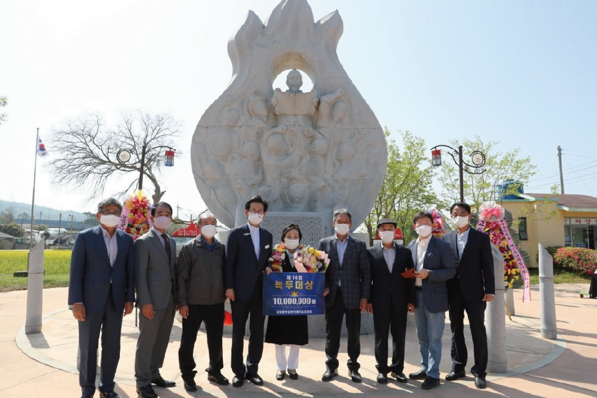 지난 4월 14일 전북 고창군은 동학농민혁명 관련 전문가로 구성된 녹두대상 심의위원회를 열어 제14회 수상단체로 태안동학농민혁명유족회(회장 문영식)를 선정, 시상하였다. 수상단체는 태안동학농민혁명유족회는 1894년 동학농민혁명 참여자 문장로의 후손 3대(참여자 문장로의 아들 구석·병석, 손자 원덕, 증손녀 영식)에 걸쳐 내포지역 동학농민혁명의 역사적 의미를 대내외에 알리고, 그 정신을 선양하기 혼신의 열정을 쏟아왔다. 그 결과 태안군 태안읍 백화산자락에 세워진 동학혁명군 추모탑(1978)이 건립되었으며, 추모탑 건립 이후 지금까지 40년이 넘도록 매년 나라와 민족을 위해 희생한 동학농민군의 영령을 위무하는 추모제를 거행해오고 있다.