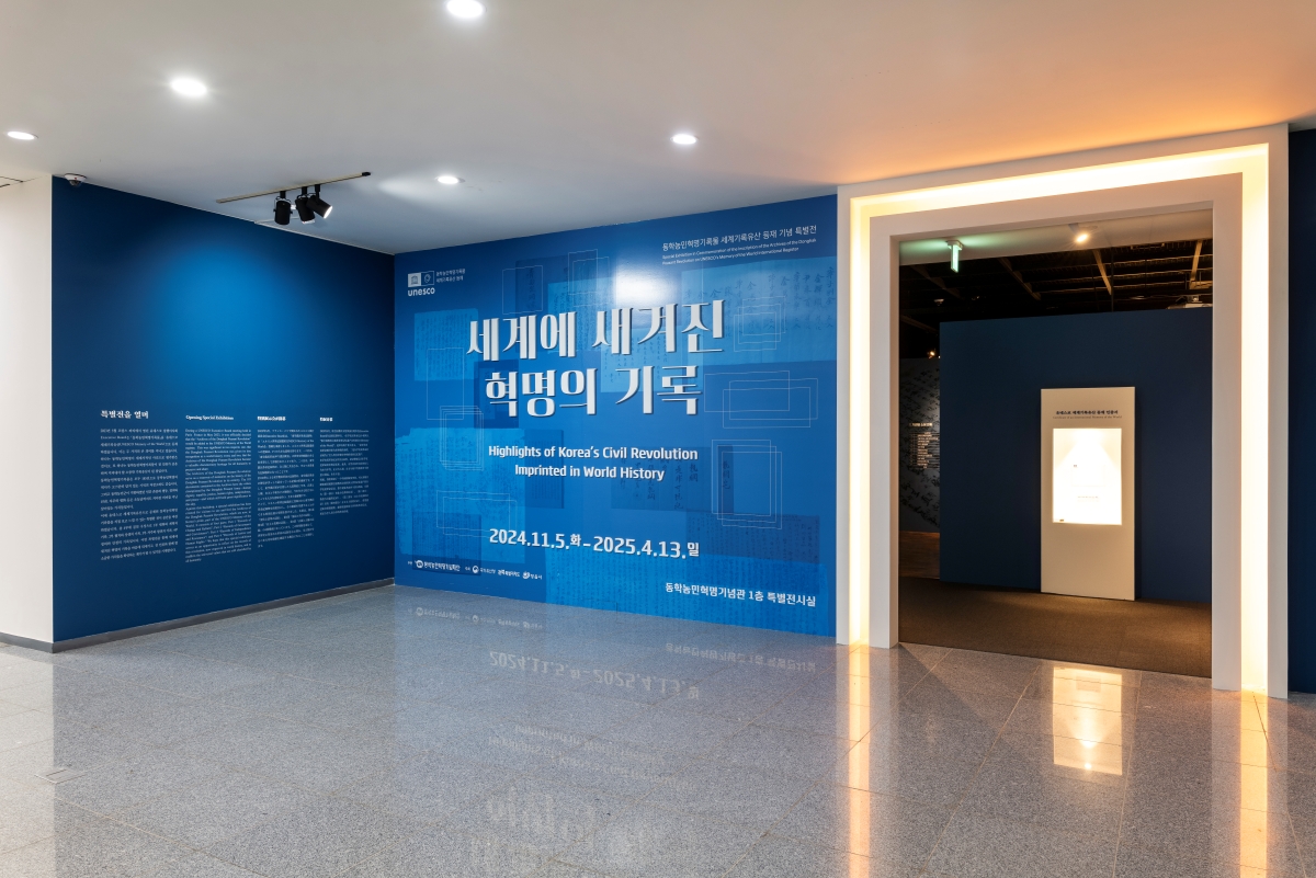 동학농민혁명기념재단(이하 기념재단)은 동학농민혁명기록물의 유네스코 세계기록유산 등재를 기념하여 2024년 11월 5일 <세계에 새겨진 혁명의 기록>이라는 주제로 특별전을 개막하였다. 2024년 11월 5일부터 2025년 4월 13일까지 동학농민혁명기념관 1층 특별전시실에서 열리는 이번 전시는 국가유산청의 세계기록유산 홍보지원사업의 일환으로 전북특별자치도와 정읍시가 함께 주최하였다. 동학농민혁명기록물을 직접 보고 느끼면서 그 속에 담긴 인류 보편적 가치에 대해 사유할 수 있는 기회를 제공하기 위해 마련되었다.