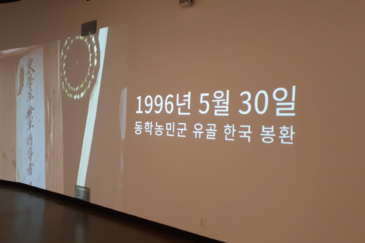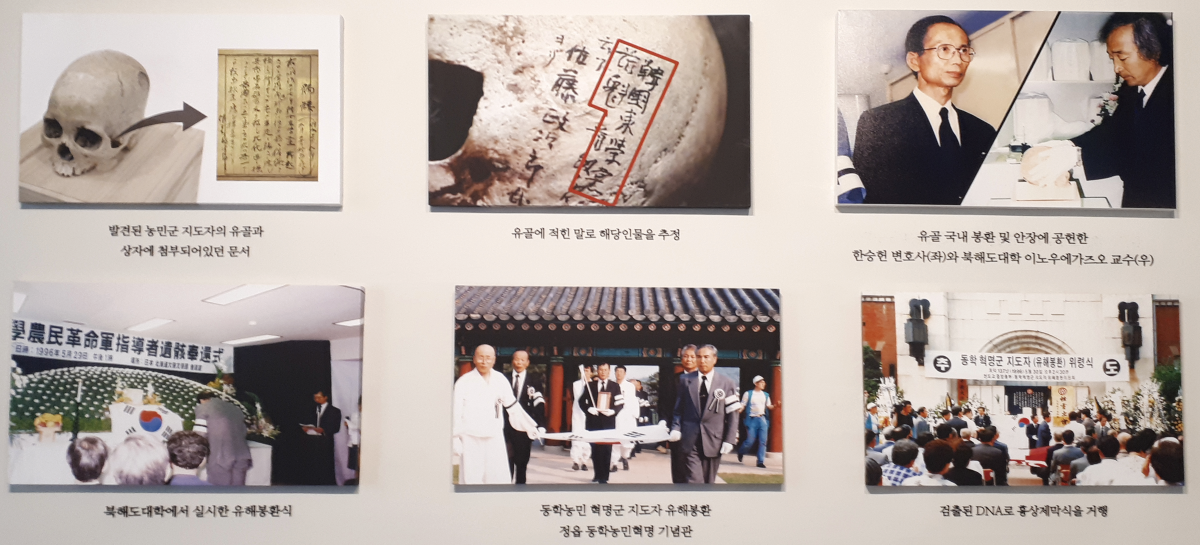문) 얘기를 듣다보니 울분이 솟구치기도 하고, 동학농민혁명에 참여하셨다가 처형된 후 백골마저 다시 토벌을 자행했던 당사자인 일본으로 무단으로 반출되어 90년이 넘는 세월 동안 방치되어 있었다는 사실에 후손된 도리를 다하지 못하였다는 마음에 죄스럽기가 한이 없습니다. 우여곡절 끝에 지난 해 비로소 그분께서 영면하실 수 있도록 녹두관에 모시게 되어 얼마나 다행인지 모르겠습니다. 이 유골이 동학농민혁명 역사에서 갖는 역사적 의미를 여러 가지로 얘기할 수 있겠습니다만 특히 중요한 한 가지를 든다면 무엇일까요?