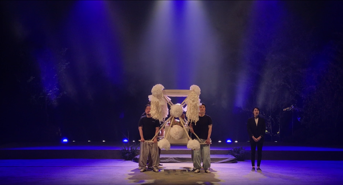 <들꽃상여>(작 최기우)는 동학농민혁명·전주·집강소를 소재로 연극을 준비하던 배우들이 ‘이름 모를 동학농민군 지도자의 유골이 2019년 125년 만에 전주 녹두관에 안치된다.’라는 기사를 보고, 한두 줄의 행적으로만 남은 수많은 농민군의 사연을 탐구하며 곡절을 떠올리고, 무명 농민군의 넋을 위로하는 꽃상여를 띄운다는 내용이다. 김제 원평의 자기 집을 집강소로 내준 백정 동록개·언년이 부부와 전주성전투에서 숨진 열네 살 소년장사 이복룡, 사람들과 어울려 놀기를 즐기는 또랑광대 소리쇠·무장댁 부부, 그리고 포성 가득한 1894년 전주에서 이름도 없이 산화한 수많은 개똥이와 언년이가 극을 이끈다. 동학농민혁명기념재단 누리집에 ‘14세 소년장사로 동학농민혁명에 참여했다가 1894년 5월 3일 전주성 전투에서 전사함’이라고 쓰인 이복룡(1881∼1894)은 아버지에 의해 억지로 씨름꾼이 된 봉동 출신 소년으로, 전주에서 동록개·언년이 부부를 만나면서 사람의 귀함과 존중을 알게 되고, 자신의 목숨을 희생하며 동료들을 구하고 죽으며 ‘소년장수’의 칭호를 얻는 것으로 그려졌다.