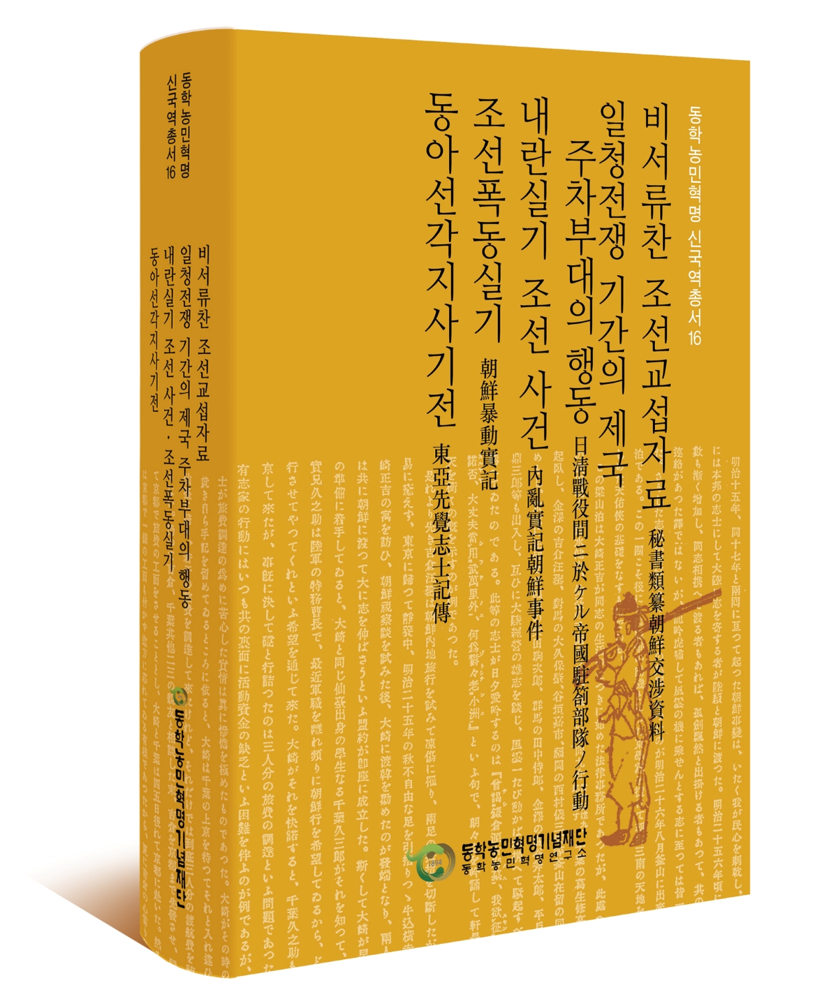 지난 9월 동학농민혁명연구소에서 동학농민혁명 관련 일본 자료 「비서류찬 조선교섭자료(祕書類纂朝鮮交涉資料)」, 「일청전쟁 기간의 제국 주차부대의 행동(日淸戰役間ニ於ケル帝國駐箚部隊ノ行動)」, 「내란실기 조선사건(內亂實記朝鮮事件)」, 「조선폭동실기(朝鮮暴動實記)」, 「동아선각지사기전(東亞先覺志士記傳)」을 번역하고 이를 입력문과 함께 엮어 「동학농민혁명 신국역총서 16」을 발간하였다. 이 자료들에는 1894년 당시 일본의 조선정책과 일본군의 한반도 내에서의 활동과 이에 저항한 동학농민군의 봉기와 활동상이 일본의 시각에서 기록되어 있다.