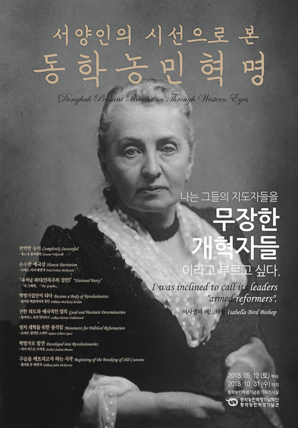 지난 5월 12일 동학농민혁명기념관 기획전시실에서 기획특별전을 개막하였다. 반봉건 민주항쟁이자 반일 민족항쟁이었던 동학농민혁명은 일제강점기 등을 거치면서 반란사건으로 왜곡·축소되었다. 그 과정에서 동학농민혁명에 대한 기억이나 기록들이 제대로 전승되지 못하였다. 그동안 동학농민혁명에 대한 연구나 해석은 이 사건을 매우 부정적으로 인식한 조선정부나 유림, 혹은 일본 측의 기록에 의존할 수밖에 없었기 때문에 제한성이 많았다. 이런 점에 착안하여 1894년 당시 조선에 머물렀던 서양인이 직접 겪고 남긴 동학농민혁명 관련 기록을 바탕으로 이번 전시를 기획하였다.