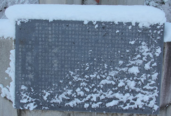 이 주문을 낭송하면서 동학군들은 신들린 듯 돌진했을 것이다. 그 동학군들이 어젯밤 흰 눈으로 여기 우금티에 내려왔을 지도 모른다. 이선근 박사가 썼다는 위령탑의 비문에 얼어붙은 눈을 털고 읽어 보았다. 헌데 ‘동학혁명군의 순국정신을 오늘에 되살리면서 빛나는 10월 유신의 한 돌을 보게 된 만큼’이라는 구절을 누군가 군데군데 돌로 쪼아놓았다. 모욕감을 느낀 민초들이 분노를 터트린 듯 보였다.