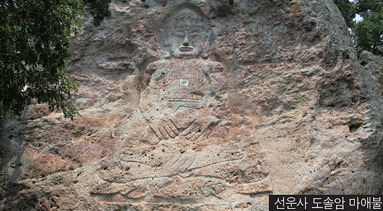 고창의 초입에 들어서면 ‘동학농민혁명의 성지 고창’이라는 문구가 먼저 눈에 들어온다. 대리석을 네모반듯하게 깎아두고 그 위에 깃발을 줄지어 세워둔 것이 그럴싸하다. 고창은 동학농민혁명에 관심이 많은 지역이며, 유적지 또한 잘 관리되고 있기에 답사에 어려움이 없으리라 전망했다. 그러나 막상 선운사에 도착하자 예상치 못한 변수가 발목을 잡는다. 초입의 주차장 이후로 차량의 운행이 금지되어 있는데다 입구에서 도솔암까지의 거리가 도보로 1시간 이상 소요된다는 것을 알게 된 것이다. 별 수 없이 도솔암이라 쓰인 표지판이 가리키는 곳을 따라 걷기 시작했으나 30도 후반의 더위에 사실상 등산을 하다 보니 등줄기에서 땀이 비 오듯 쏟아진다. 쉬다 걷다를 반복하다 가져간 생수통의 물이 바닥을 드러낼 무렵 겨우 도솔암이 그 모습을 드러낸다. 선운사는 대한불교조계종 제24교구 본사로 한국의 명승고찰로 유명하다. 금동보살좌상 등 5점의 보물이 있으며, 기타 지방 문화재 등 총 19점의 지정문화재가 있다. 급한 일정에 찬찬히 둘러보지 못 것이 못내 아쉬웠지만, 후에 한 번 더 방문할 기회가 있을 것이라 자위하며 도솔암을 지나쳐 마애불로 향한다. 마침내 마애불앞에 서자 비현실적인 느낌에 사로잡힌다. 지상 3미터의 높이에서 시작되는 세로 5미터 크기의 마애불은 양각된 것임에도 불구하고 살아있는 듯 한 입체감으로 압도해온다. 명치부분의 네모난 흔적은 마애불의 전설에 대한 경외감마저 불러일으킨다.